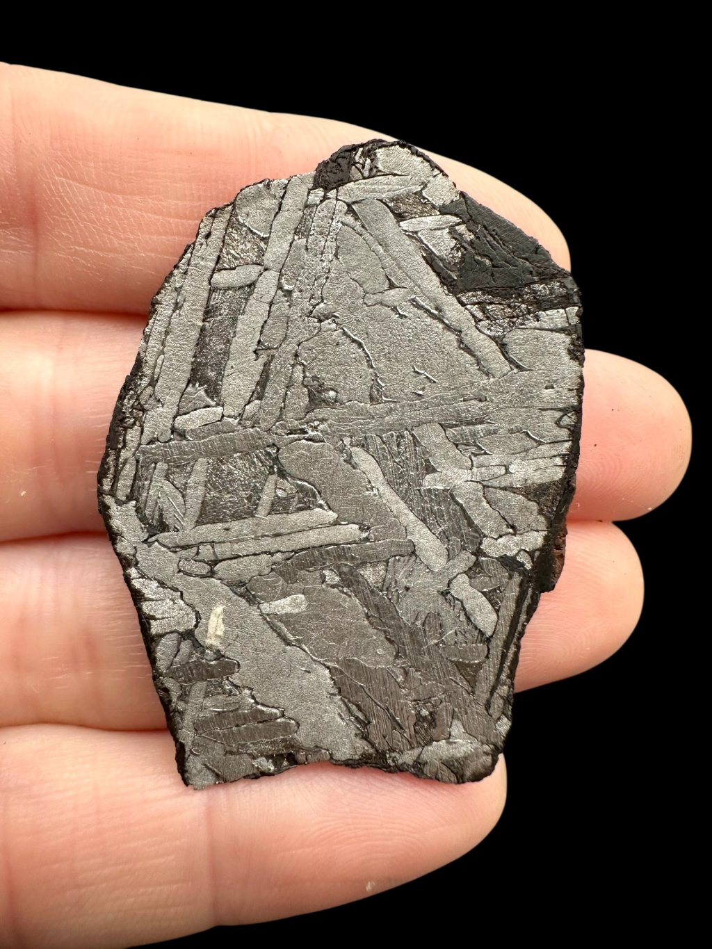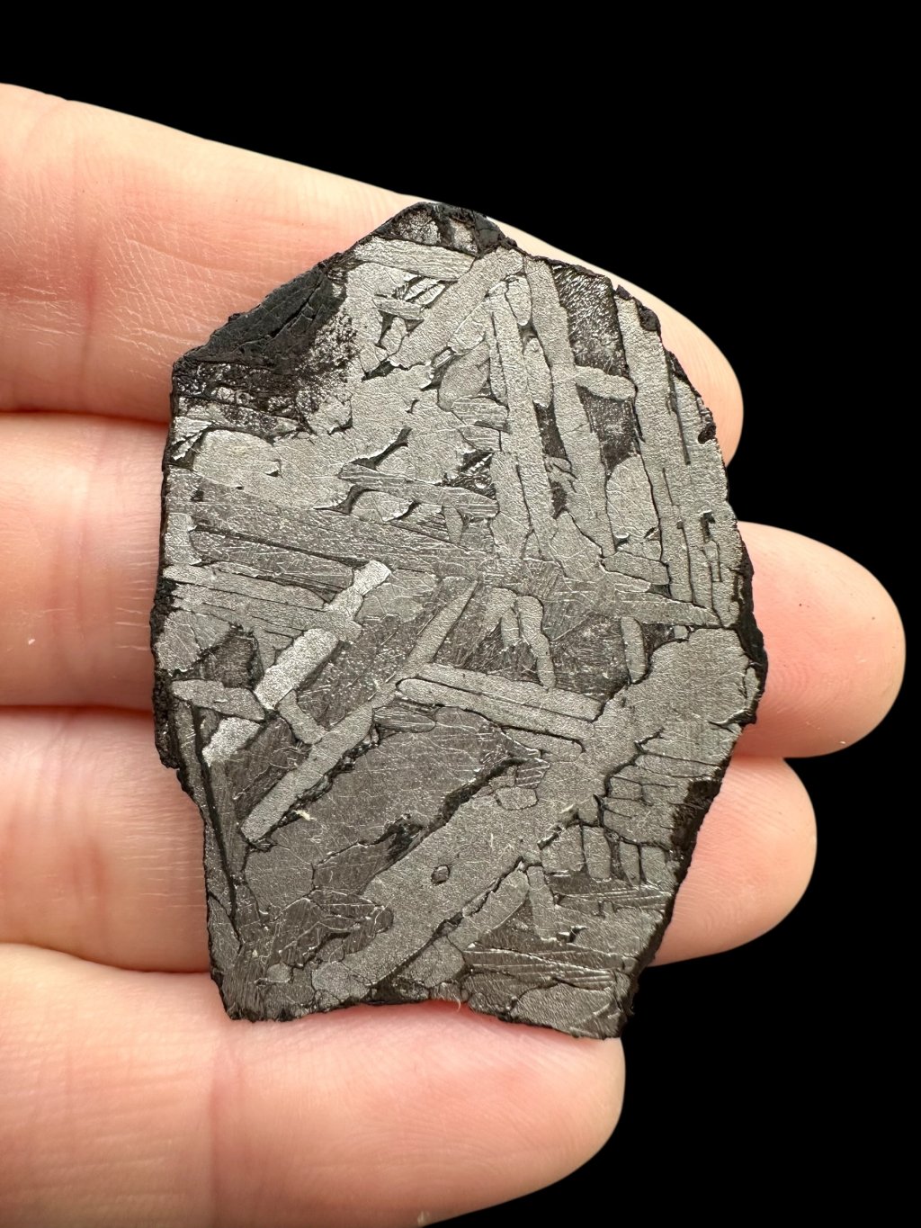 Tip: Widmanstättenovy obrazce jsou u tohoto exempláře mimořádně výrazné, což nebývá běžné – jedná se o špičkovou kvalitu.