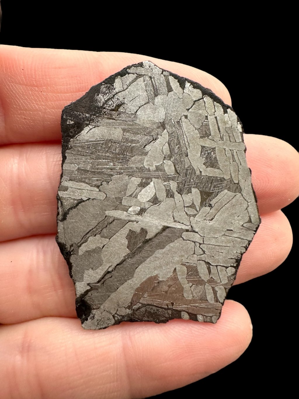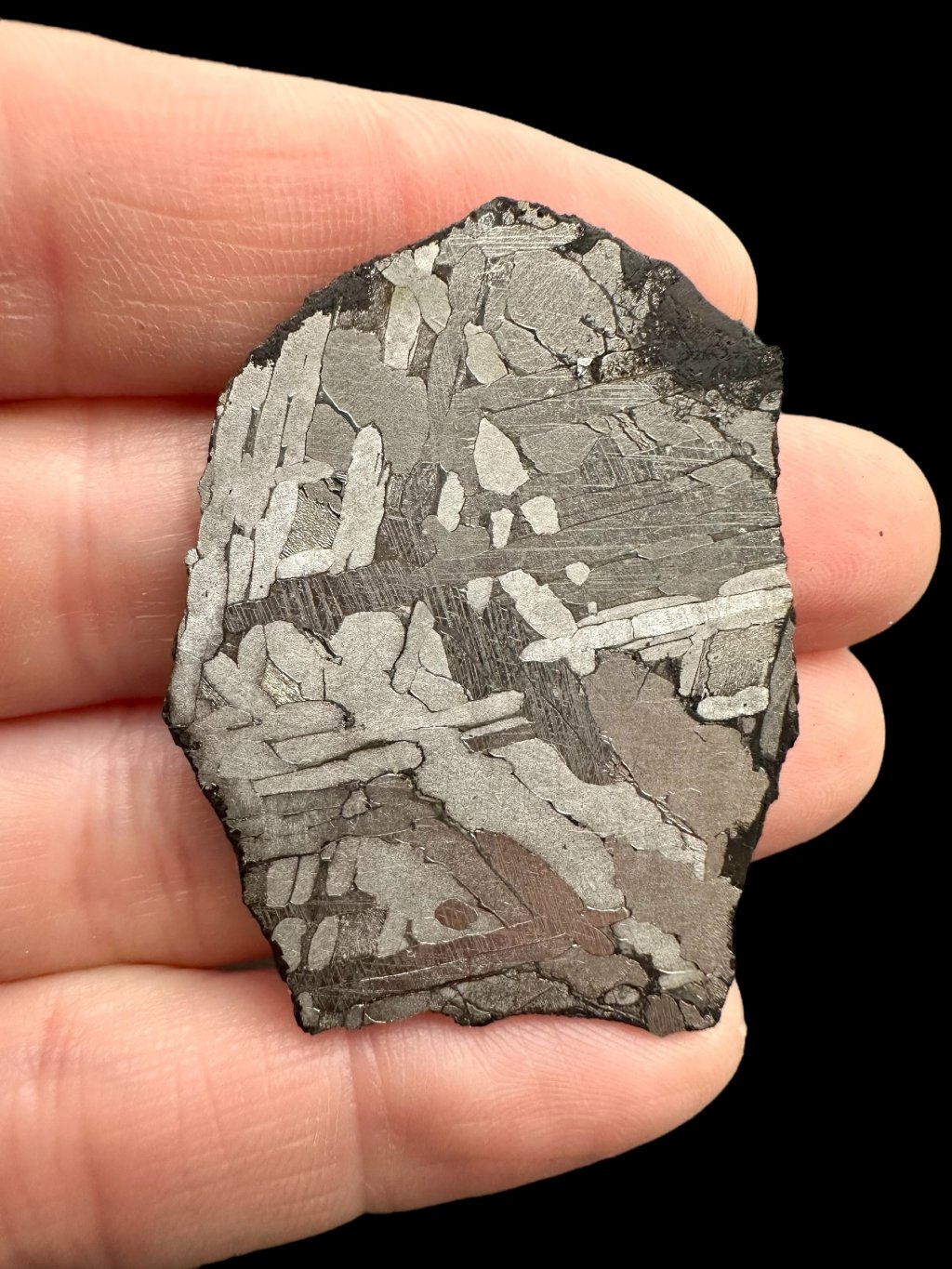 Tip: Widmanstättenovy obrazce jsou u tohoto exempláře mimořádně výrazné, což nebývá běžné – jedná se o špičkovou kvalitu.