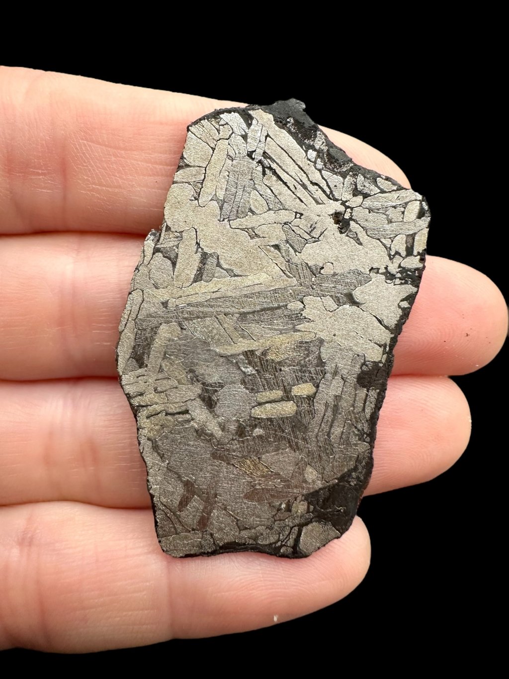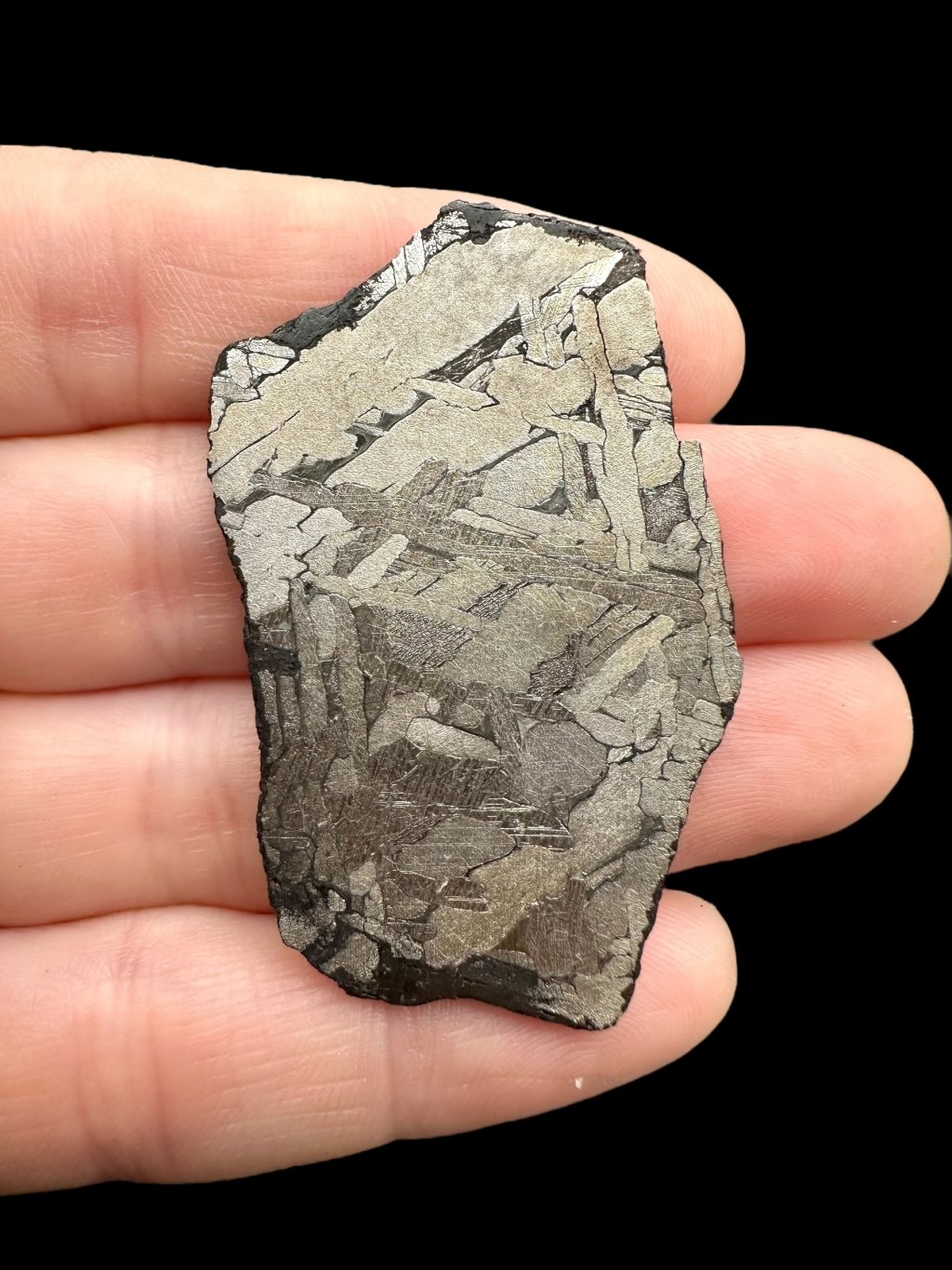 Tip: Widmanstättenovy obrazce jsou u tohoto exempláře mimořádně výrazné, což nebývá běžné – jedná se o špičkovou kvalitu.