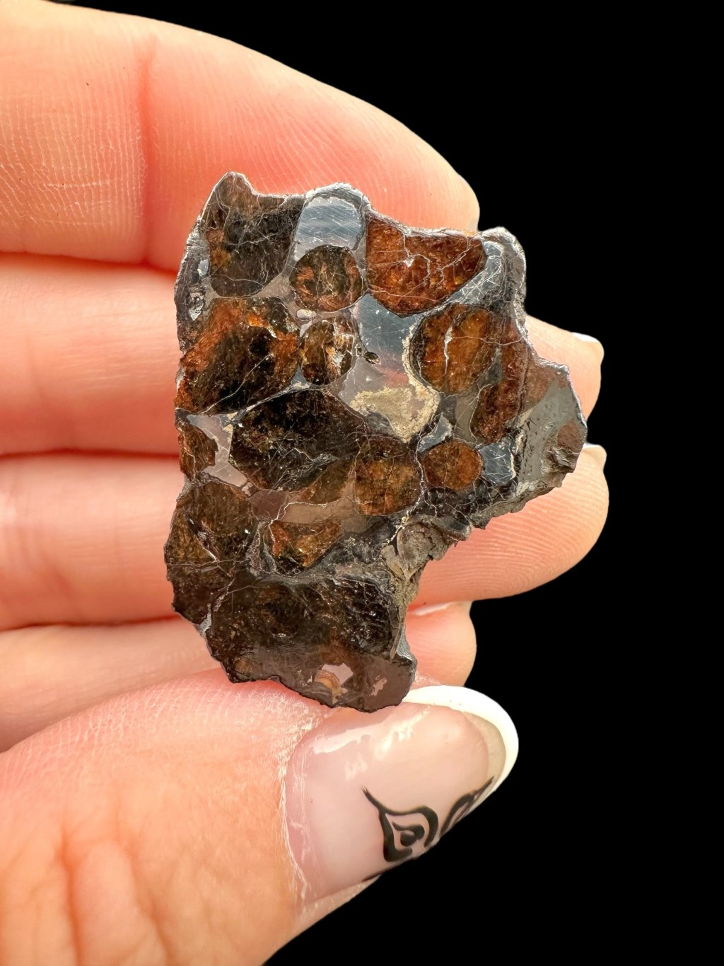 Poznámka: Tento pallasit má přirozenou tendenci ke korozi (rezivění), zejména při vyšší vlhkosti