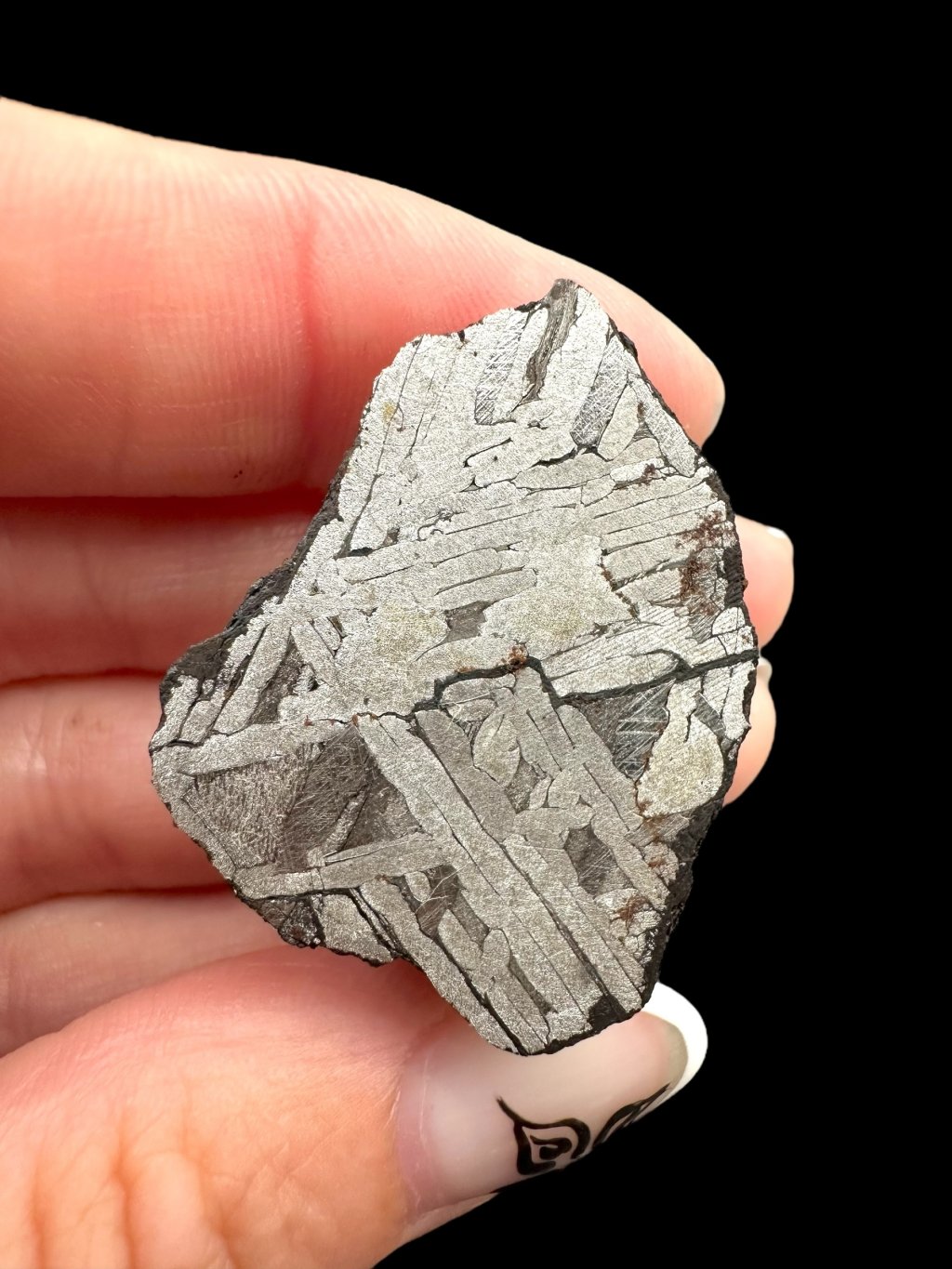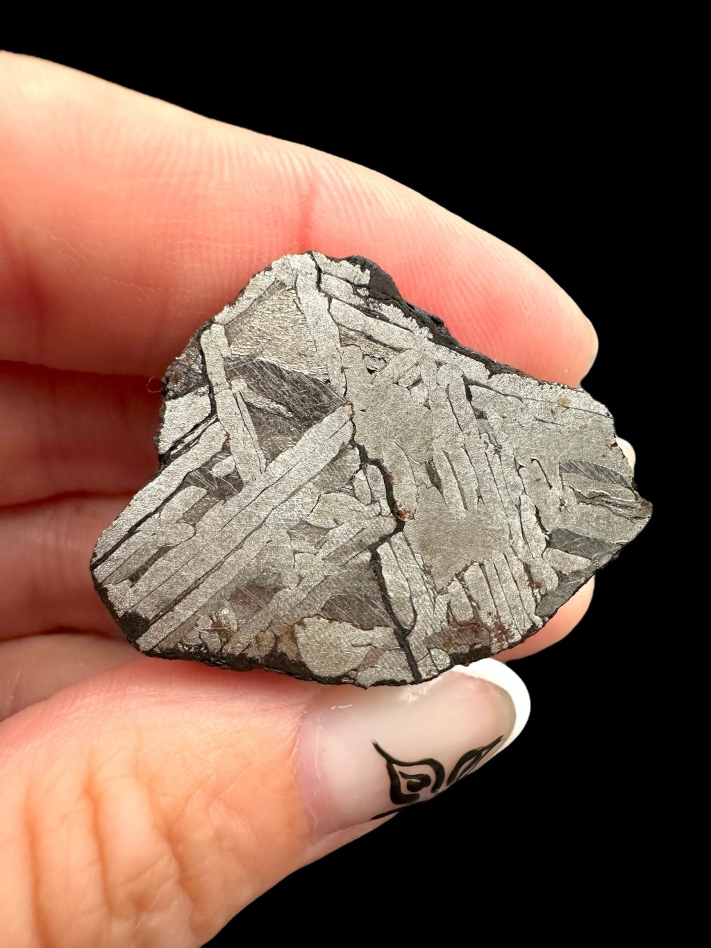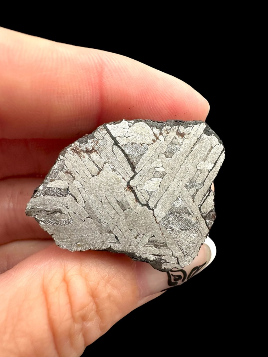 Tip: Widmanstättenovy obrazce jsou u tohoto exempláře mimořádně výrazné, což nebývá běžné – jedná se o špičkovou kvalitu.