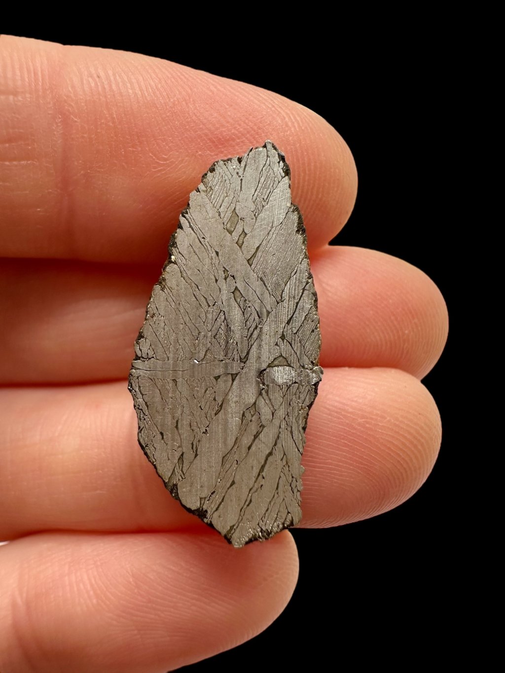 Tip: Widmanstättenovy obrazce jsou u tohoto exempláře mimořádně výrazné, což nebývá běžné – jedná se o špičkovou kvalitu.