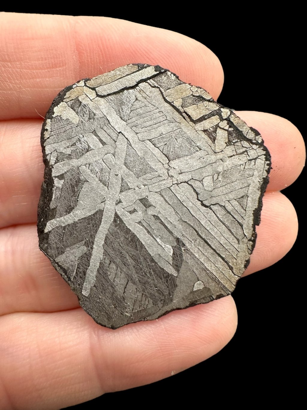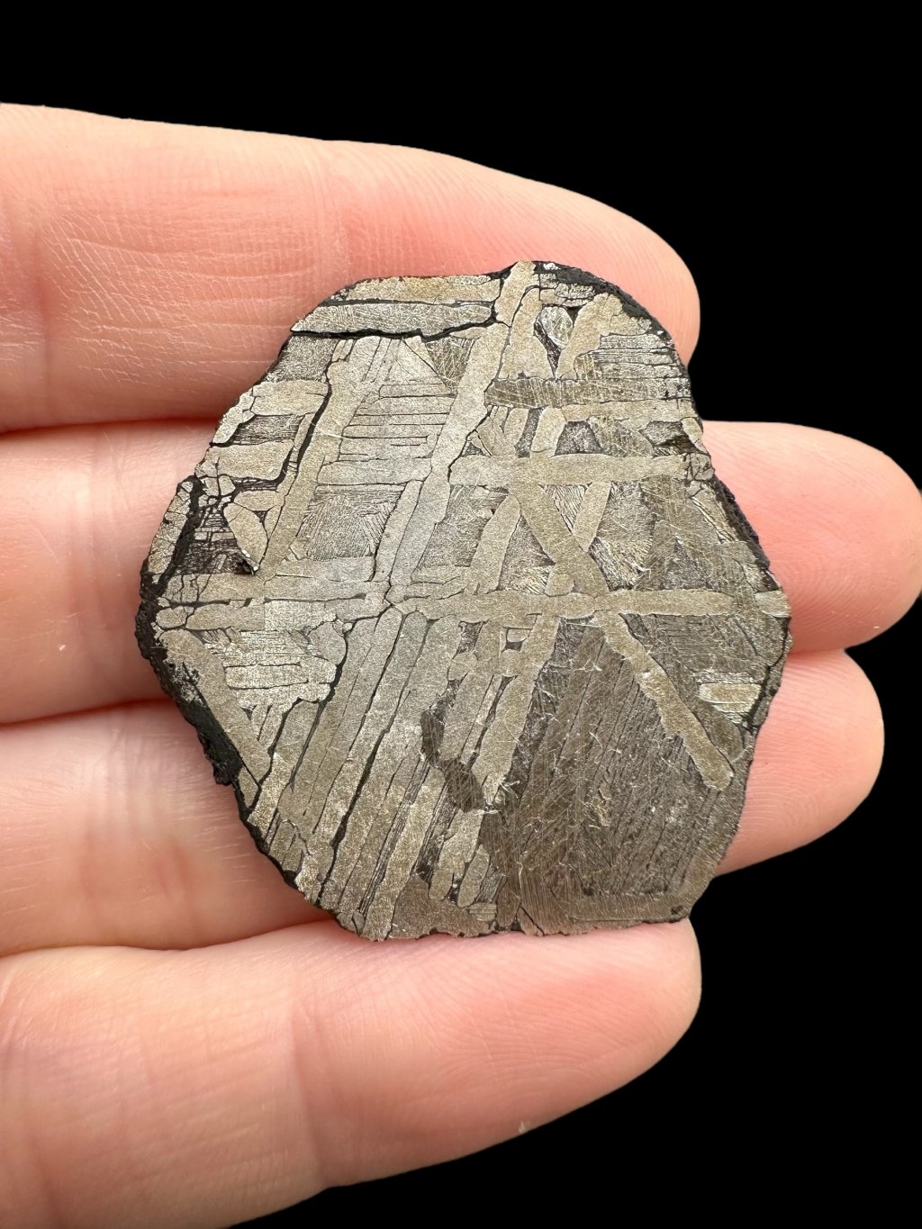 Tip: Widmanstättenovy obrazce jsou u tohoto exempláře mimořádně výrazné, což nebývá běžné – jedná se o špičkovou kvalitu.