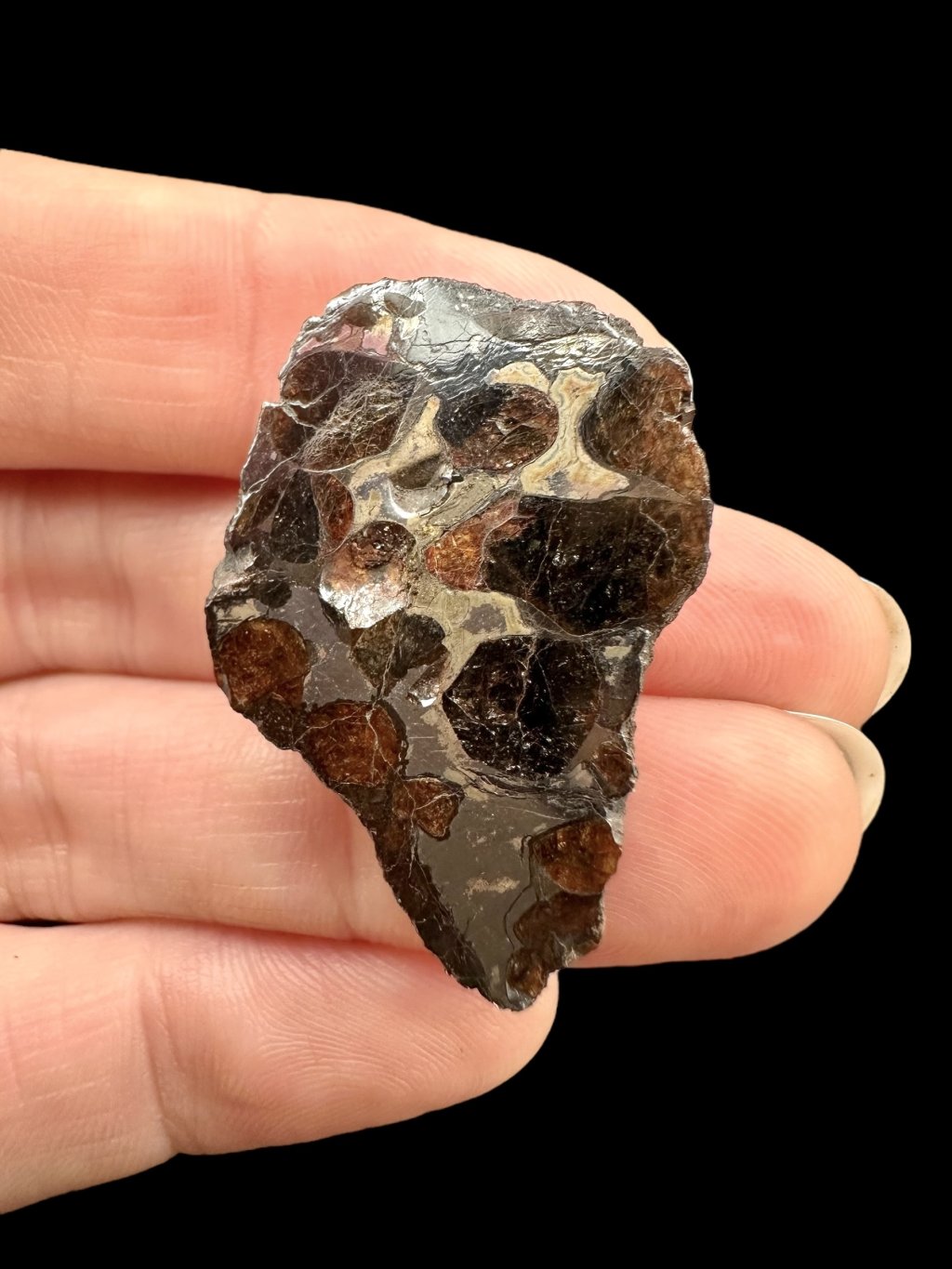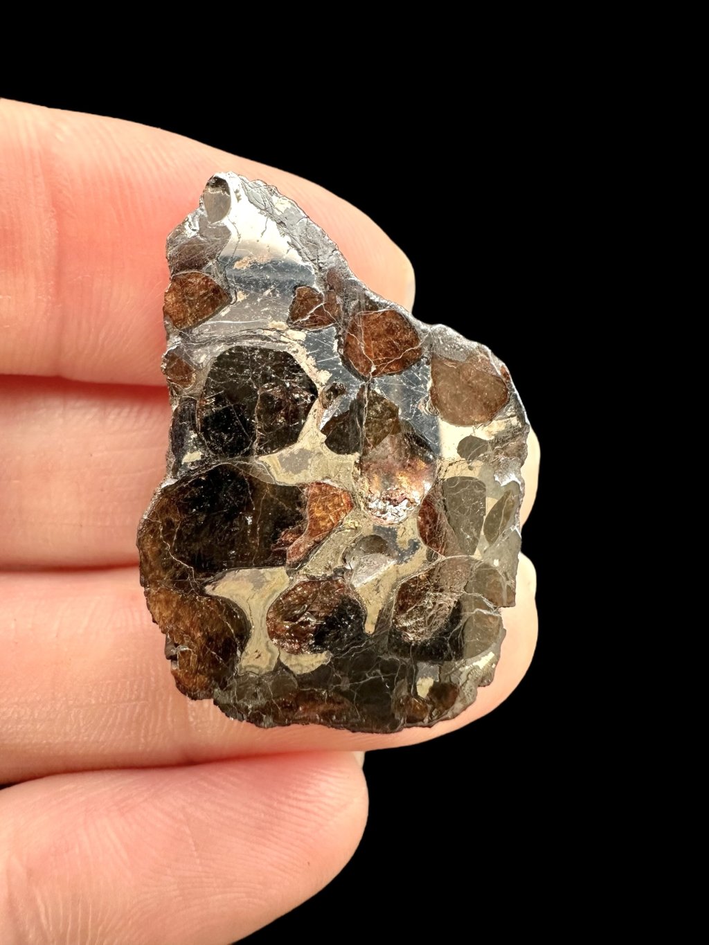 Poznámka: Tento pallasit má přirozenou tendenci ke korozi (rezivění), zejména při vyšší vlhkosti