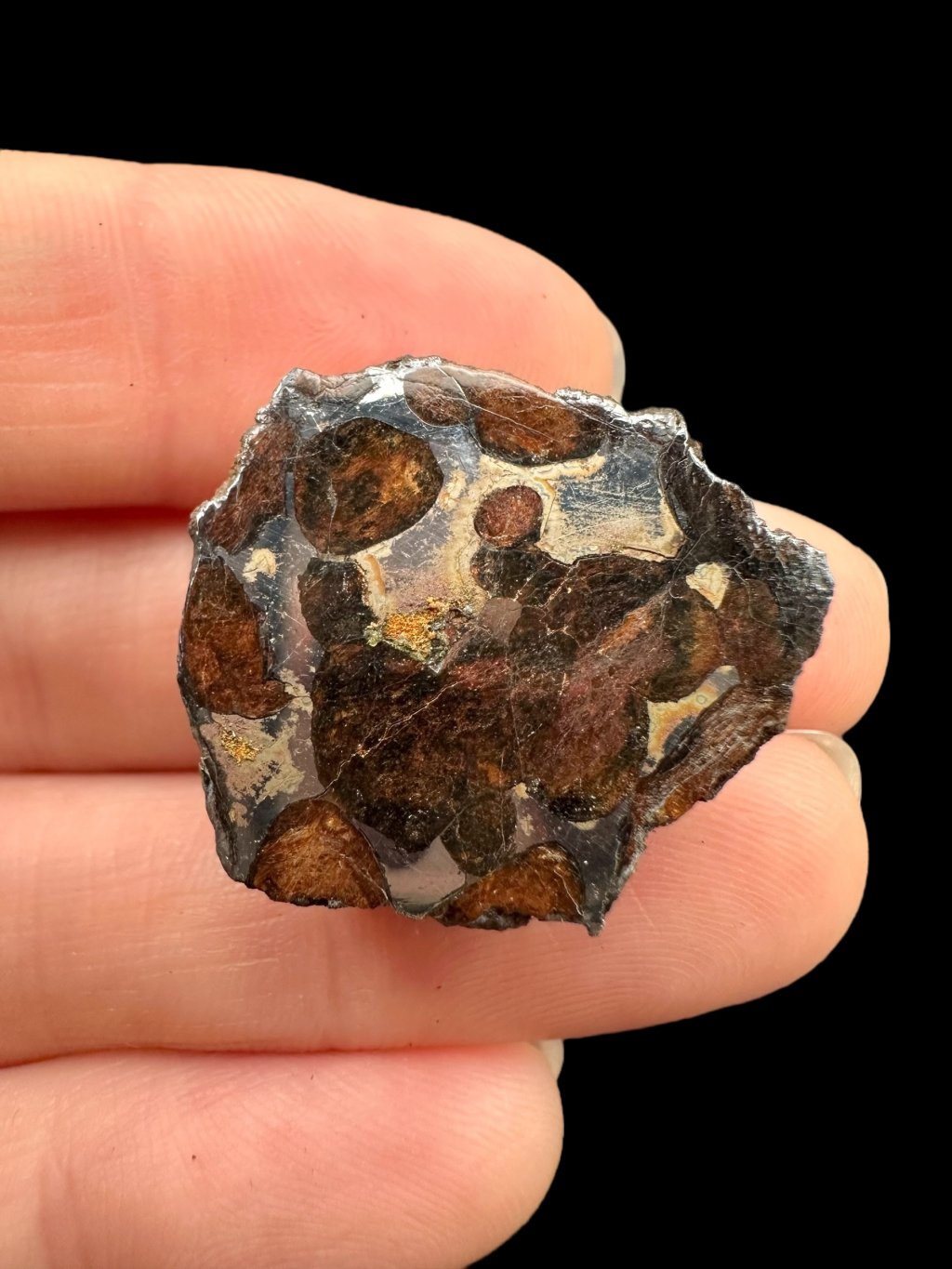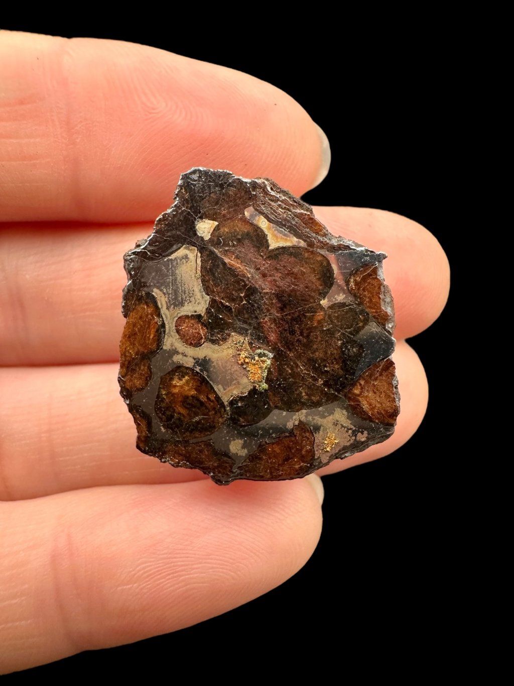 Poznámka: Tento pallasit má přirozenou tendenci ke korozi (rezivění), zejména při vyšší vlhkosti