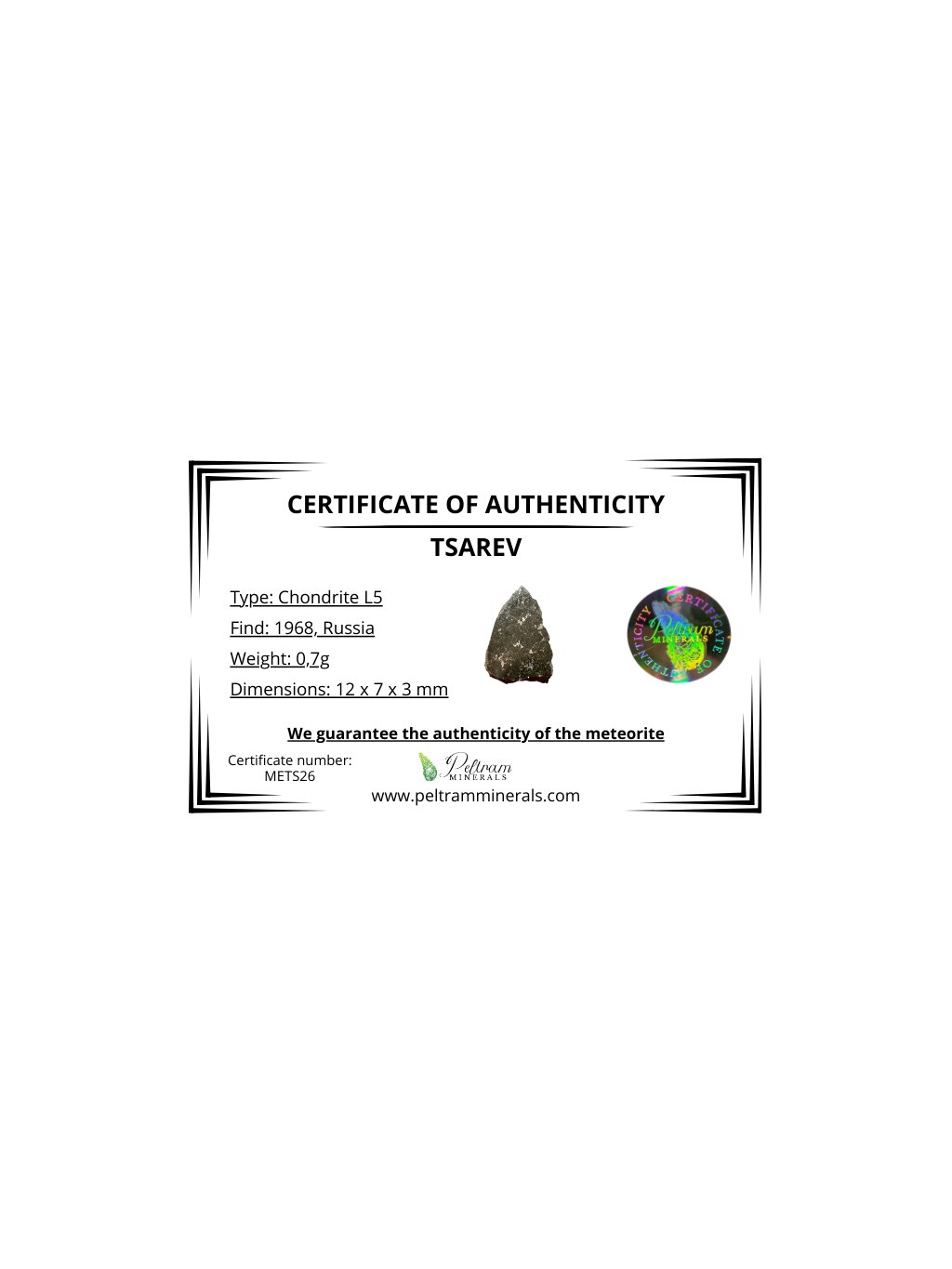 Meteorit Tsarev 0,7g – Volgograd, Rusko