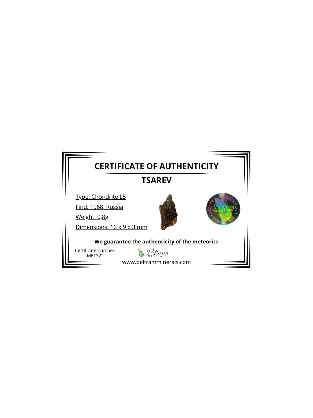 Meteorit Tsarev 0,8g – Volgograd, Rusko