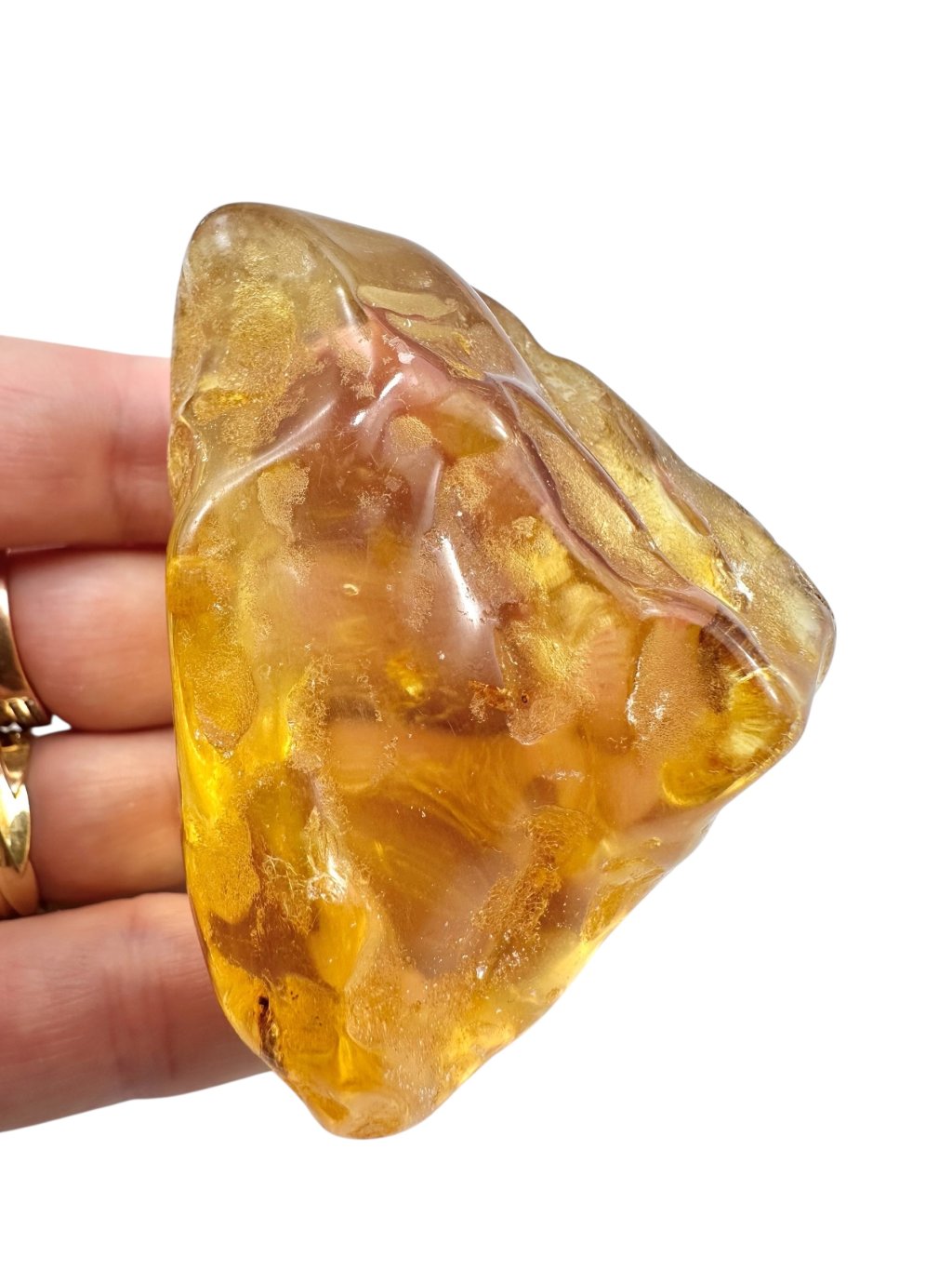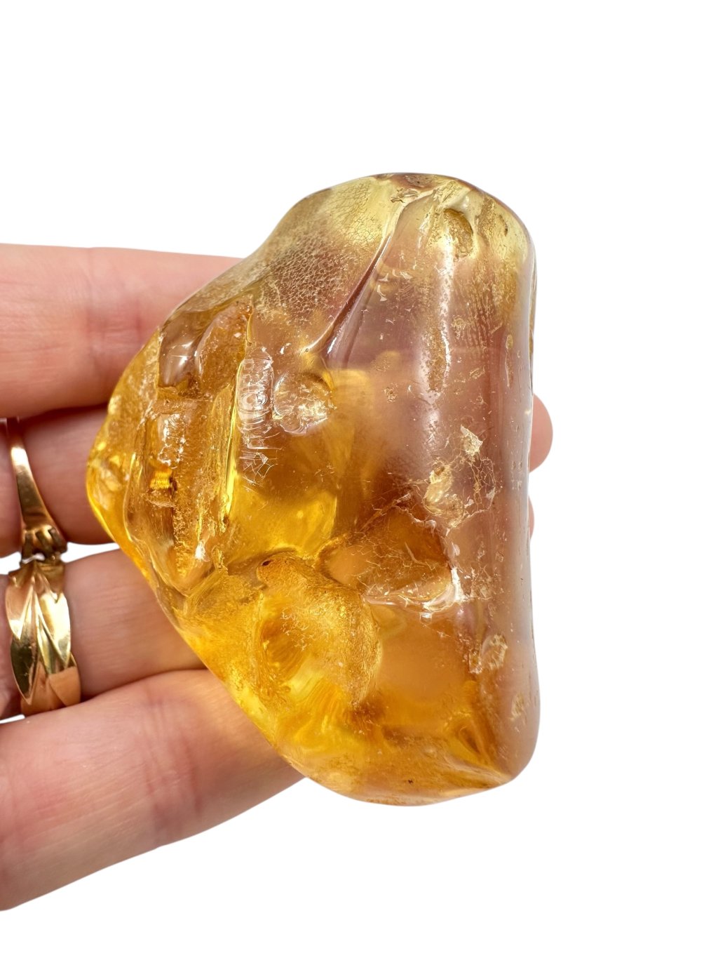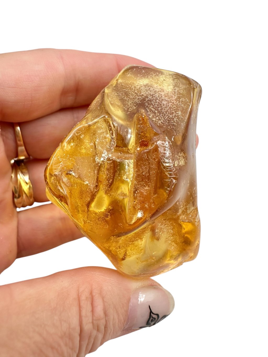 Kopál se může na první pohled podobat jantaru – bývá čirý, zlatavý a lehký, někdy dokonce obsahuje inkluze hmyzu nebo rostlin. Zásadní rozdíl však spočívá v jeho fyzikálních a chemických vlastnostech: kopál je měkčí, méně stabilní, často lepkavější a rozpouští se v organických rozpouštědlech (např. v acetonu), zatímco pravý jantar zůstává neměnný.