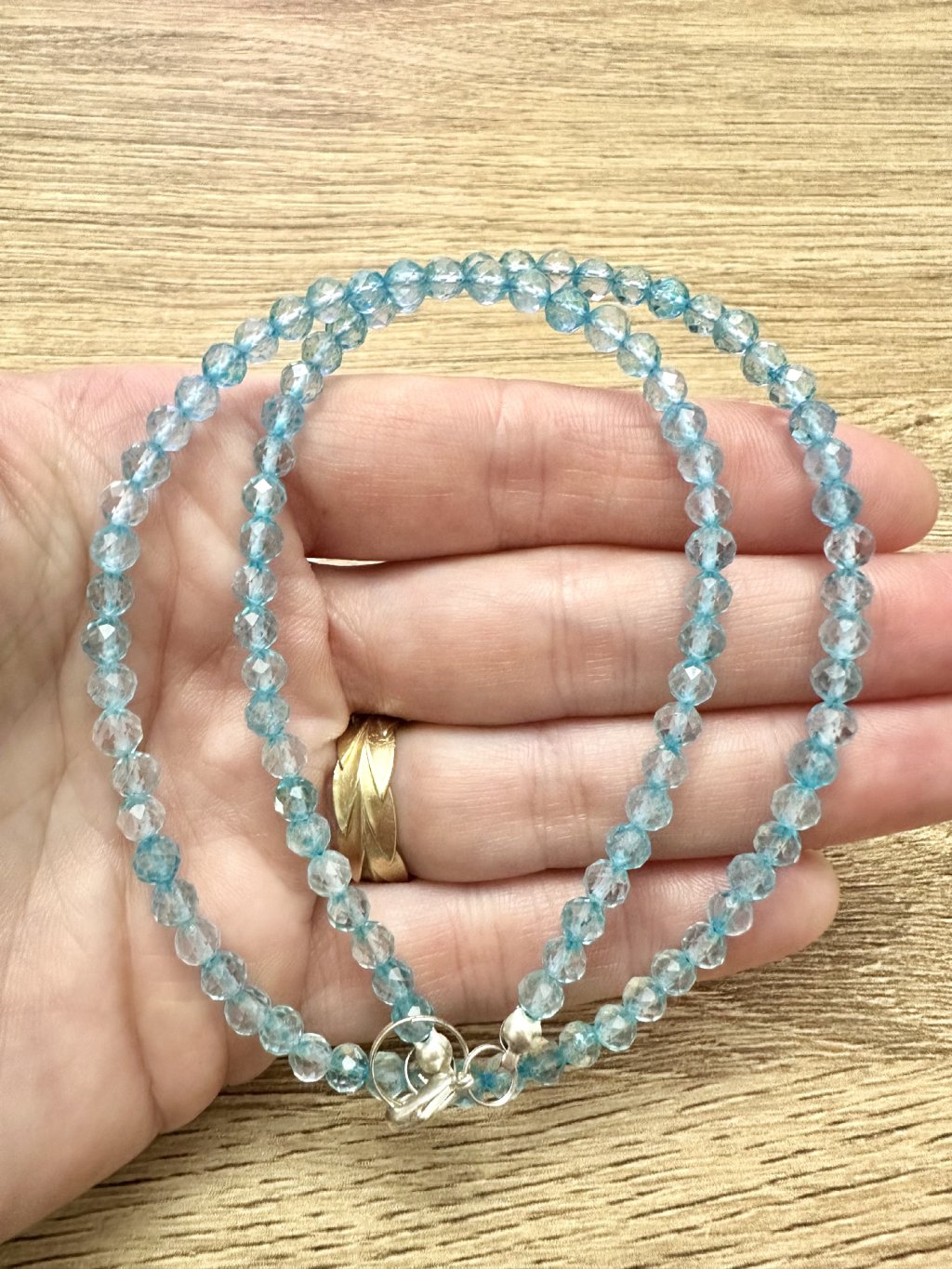 Náhrdelník z modrého topazu 4 mm – broušené korálky