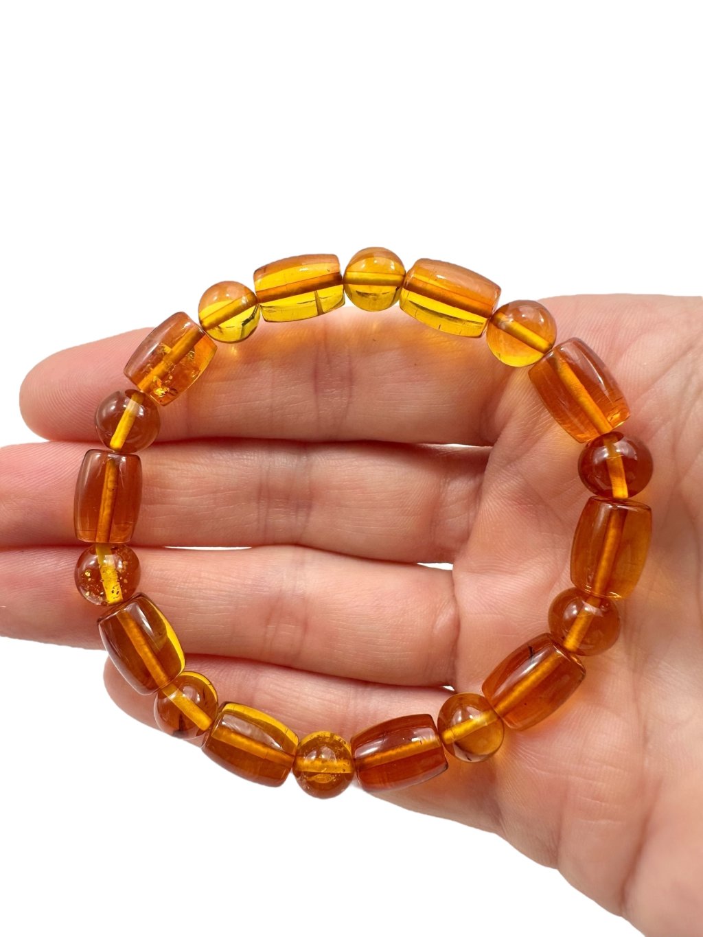 Náramek z leštěných korálků pravého jantaru s hmyzem / TOP