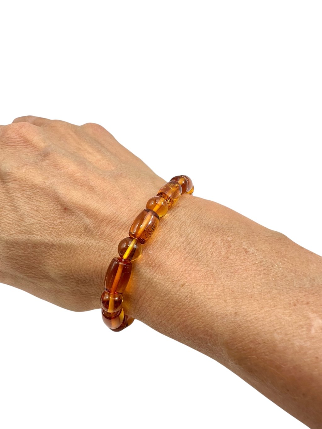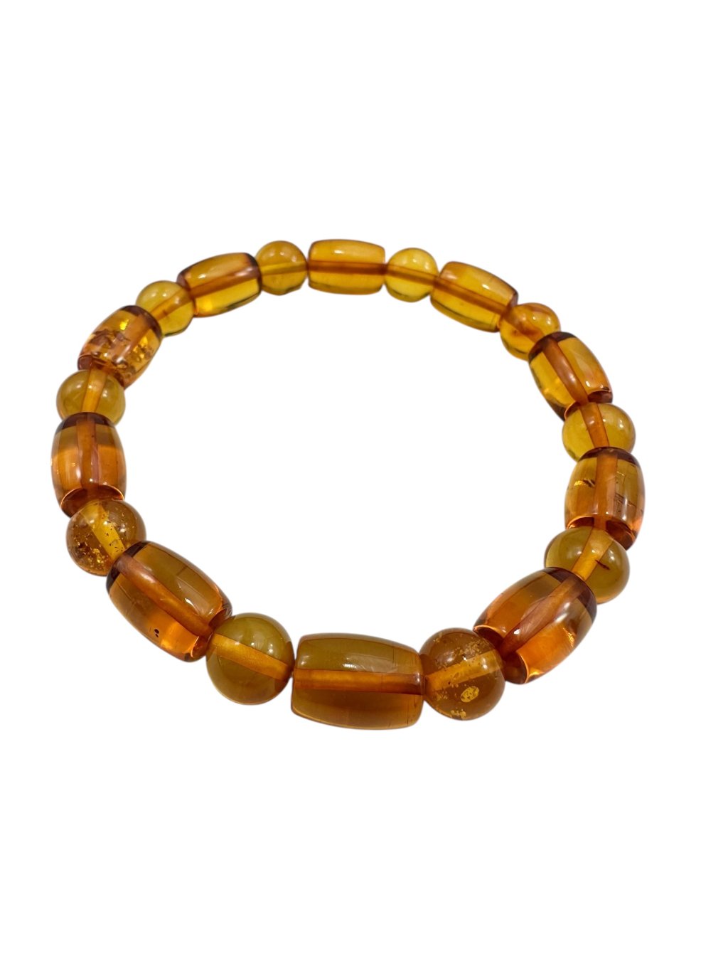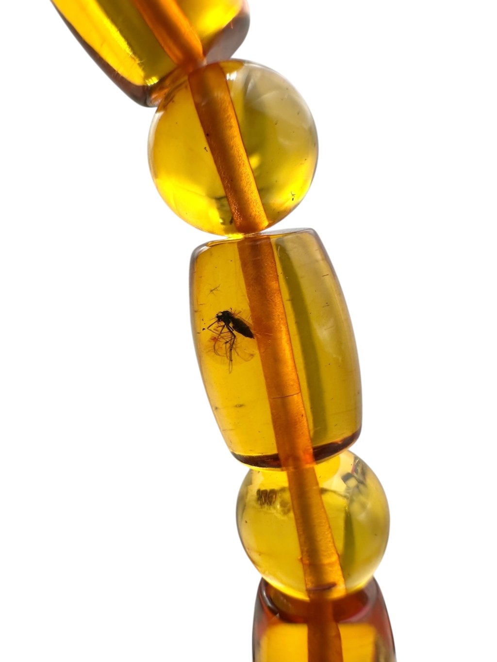 Náramek z leštěných korálků pravého jantaru s hmyzem / TOP