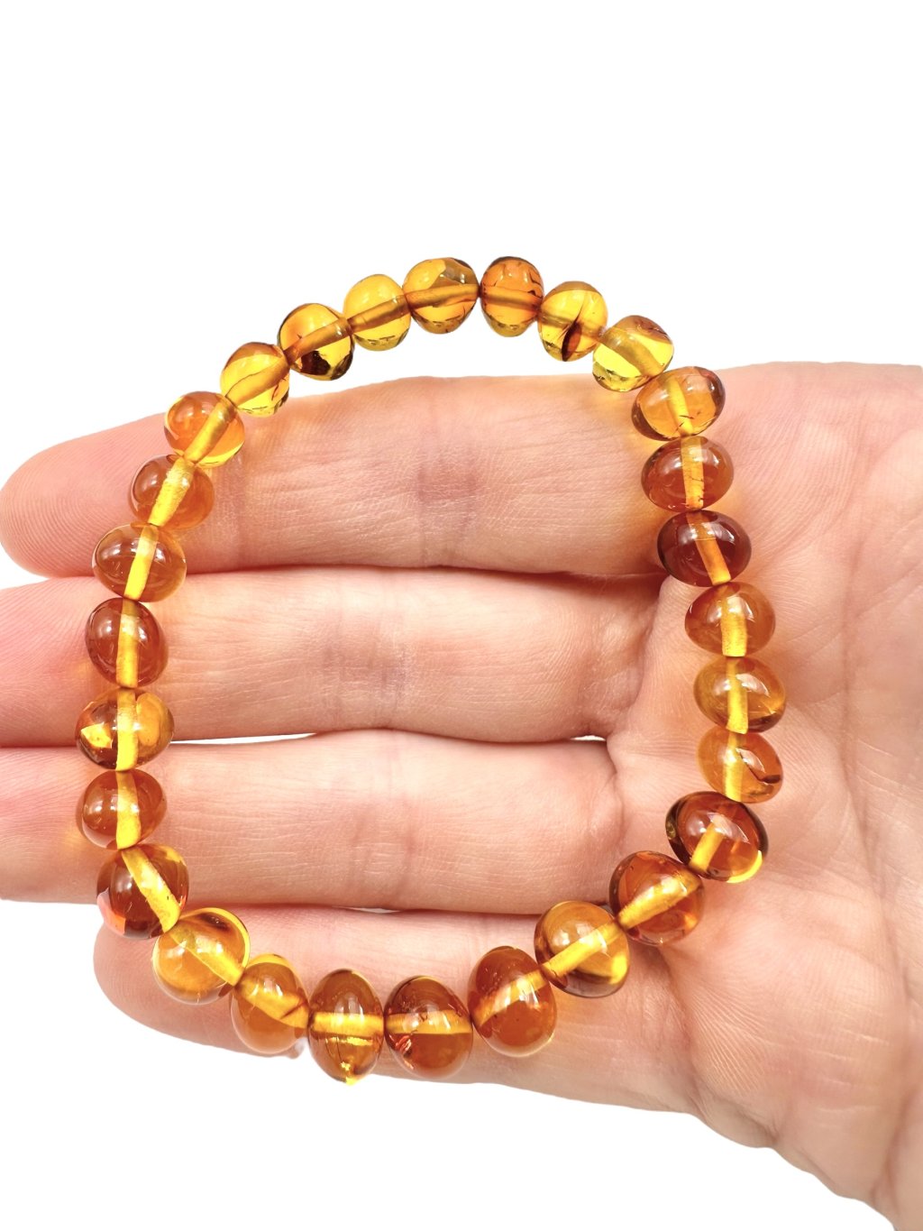 Náramek z leštěných korálků pravého jantaru / světlý – náhodný kus