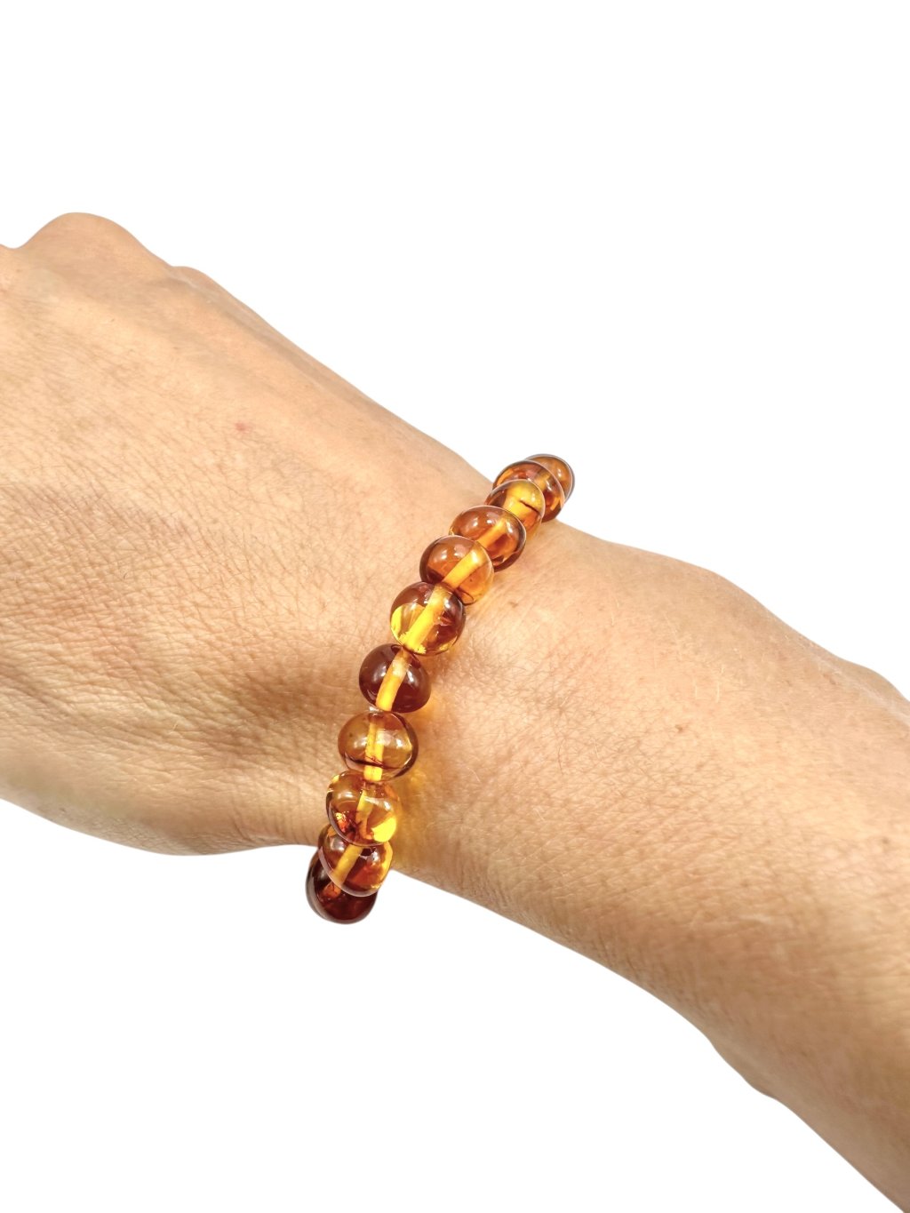 Náramek z leštěných korálků pravého jantaru / světlý – náhodný kus