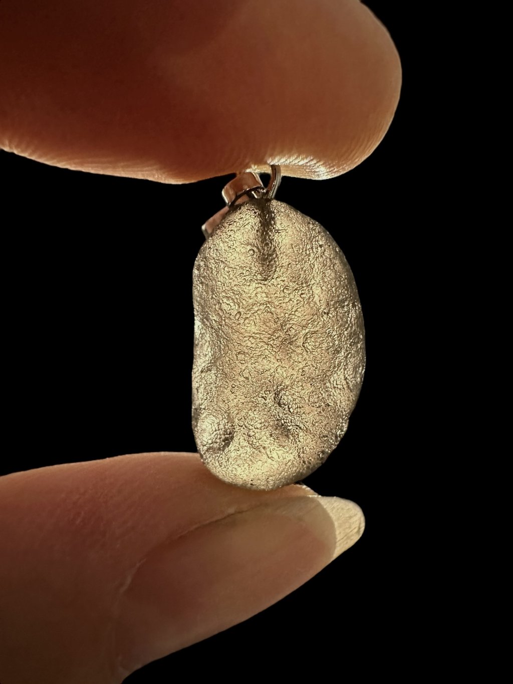 Přívěsky z bižuterního rhodiovaného kovu v minimalistickém stylu kombinují krásu vzácného přírodního minerálu s odolností a leskem moderního kovu.