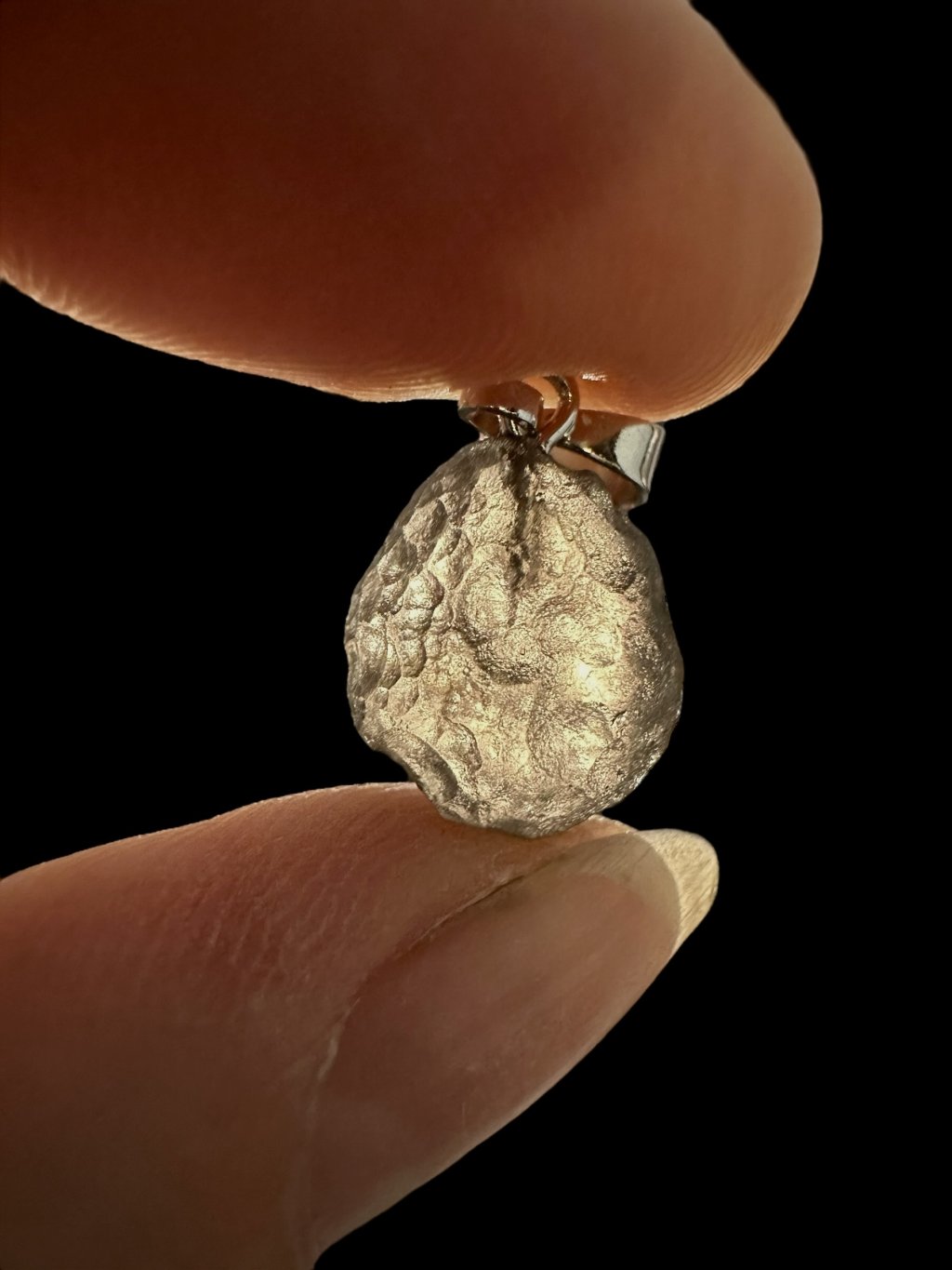 Přívěsky z bižuterního rhodiovaného kovu v minimalistickém stylu kombinují krásu vzácného přírodního minerálu s odolností a leskem moderního kovu.