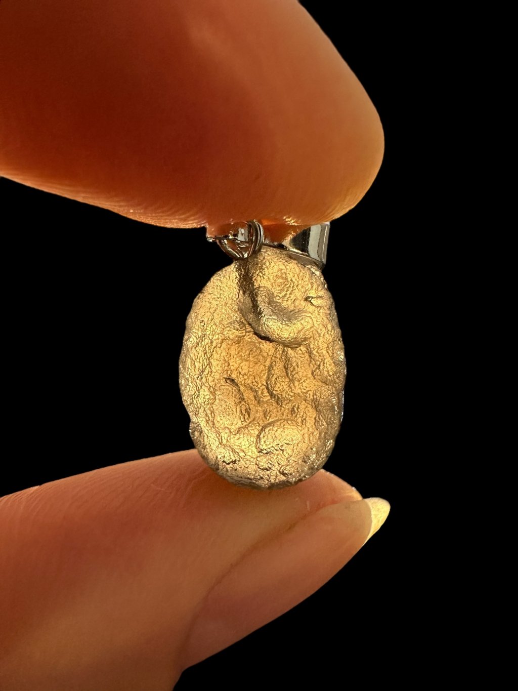 Přívěsky z bižuterního rhodiovaného kovu v minimalistickém stylu kombinují krásu vzácného přírodního minerálu s odolností a leskem moderního kovu.