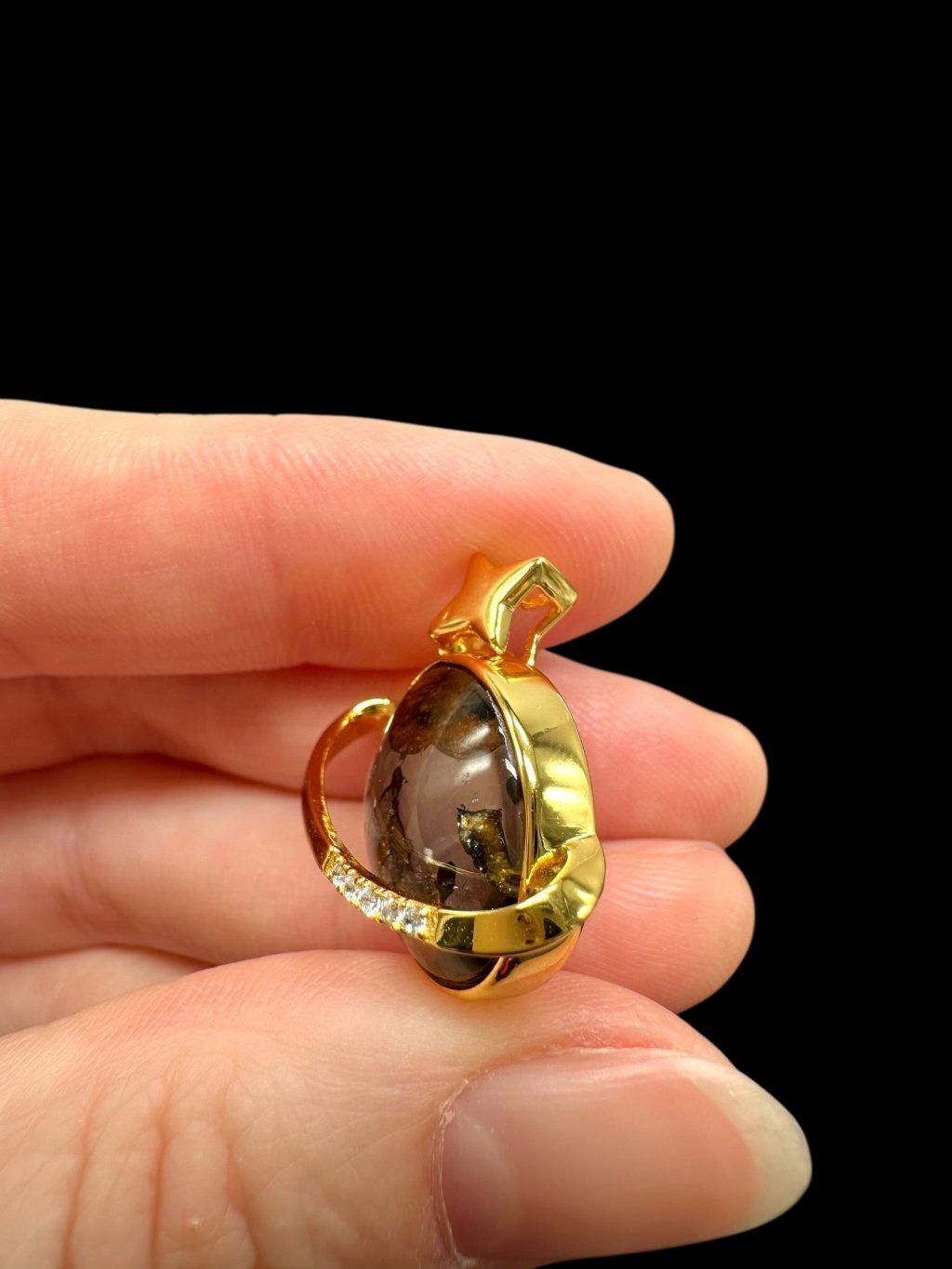 Materiál použitý k upevnění meteoritu do šperku: Pozlacený kov