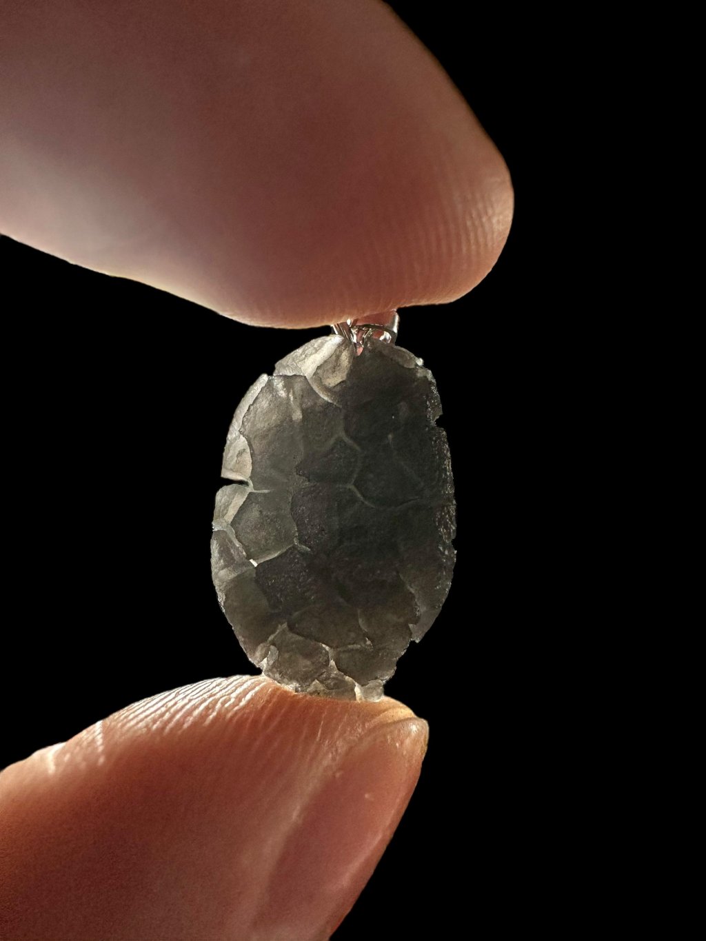 Tento výrazně skulptovaný obsidián byl odborně popsán v roce 2025 v knize Skleněné zázraky.
