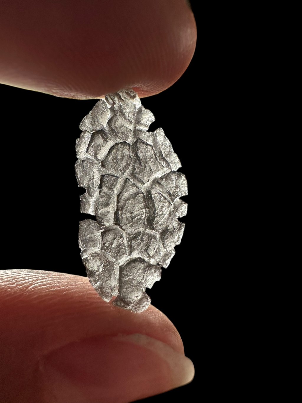 Tento výrazně skulptovaný obsidián byl odborně popsán v roce 2025 v knize Skleněné zázraky.