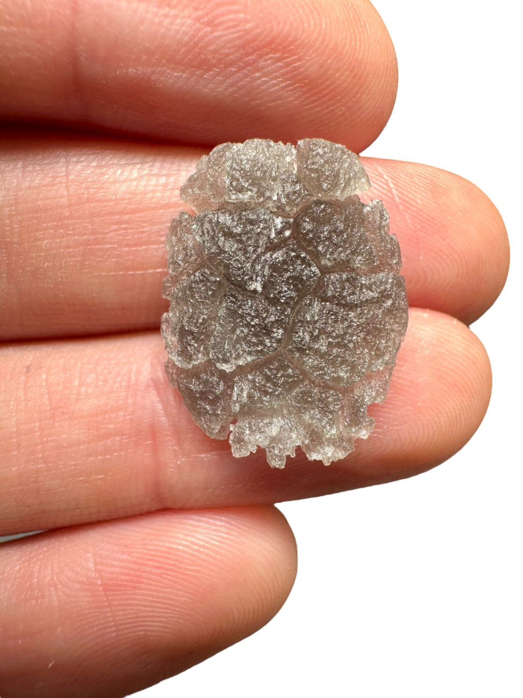 Tento výrazně skulptovaný obsidián byl odborně popsán v roce 2025 v knize Skleněné zázraky.