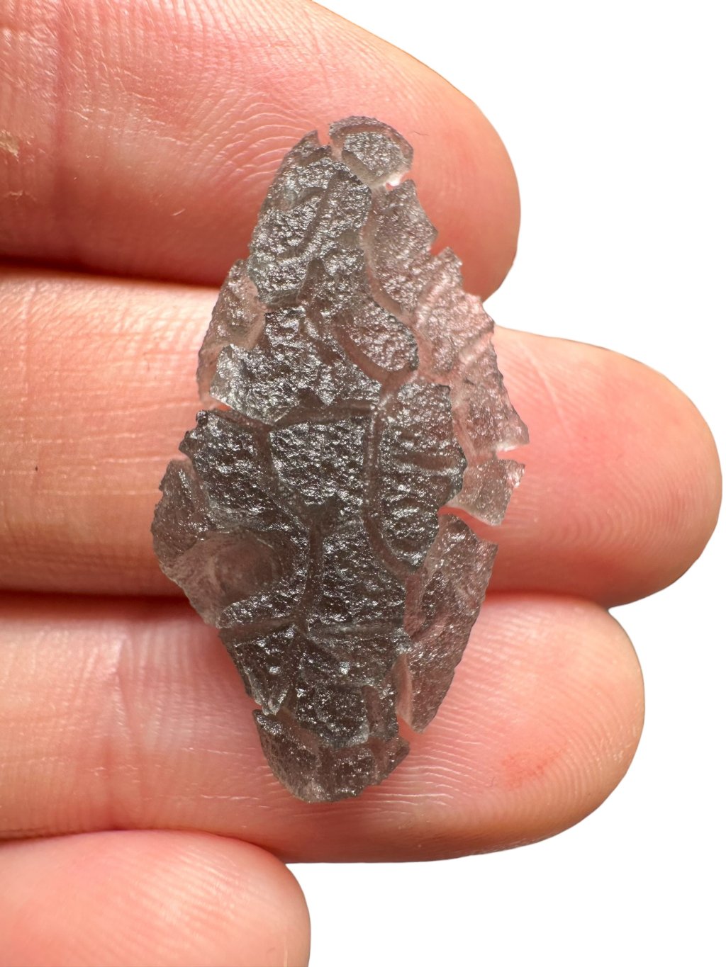 Tento výrazně skulptovaný obsidián byl odborně popsán v roce 2025 v knize Skleněné zázraky.