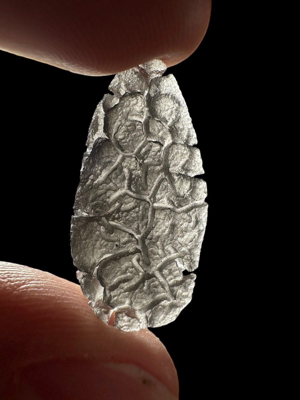 Tento výrazně skulptovaný obsidián byl odborně popsán v roce 2025 v knize Skleněné zázraky.