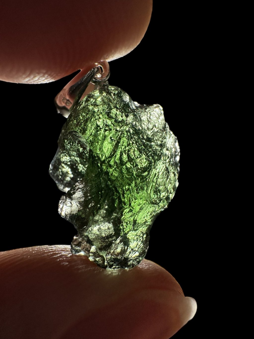 Stříbrný vltavínový přívěsek 2g