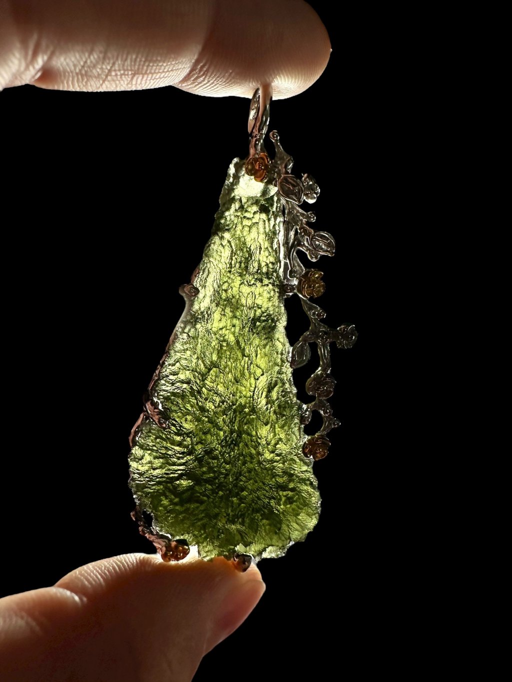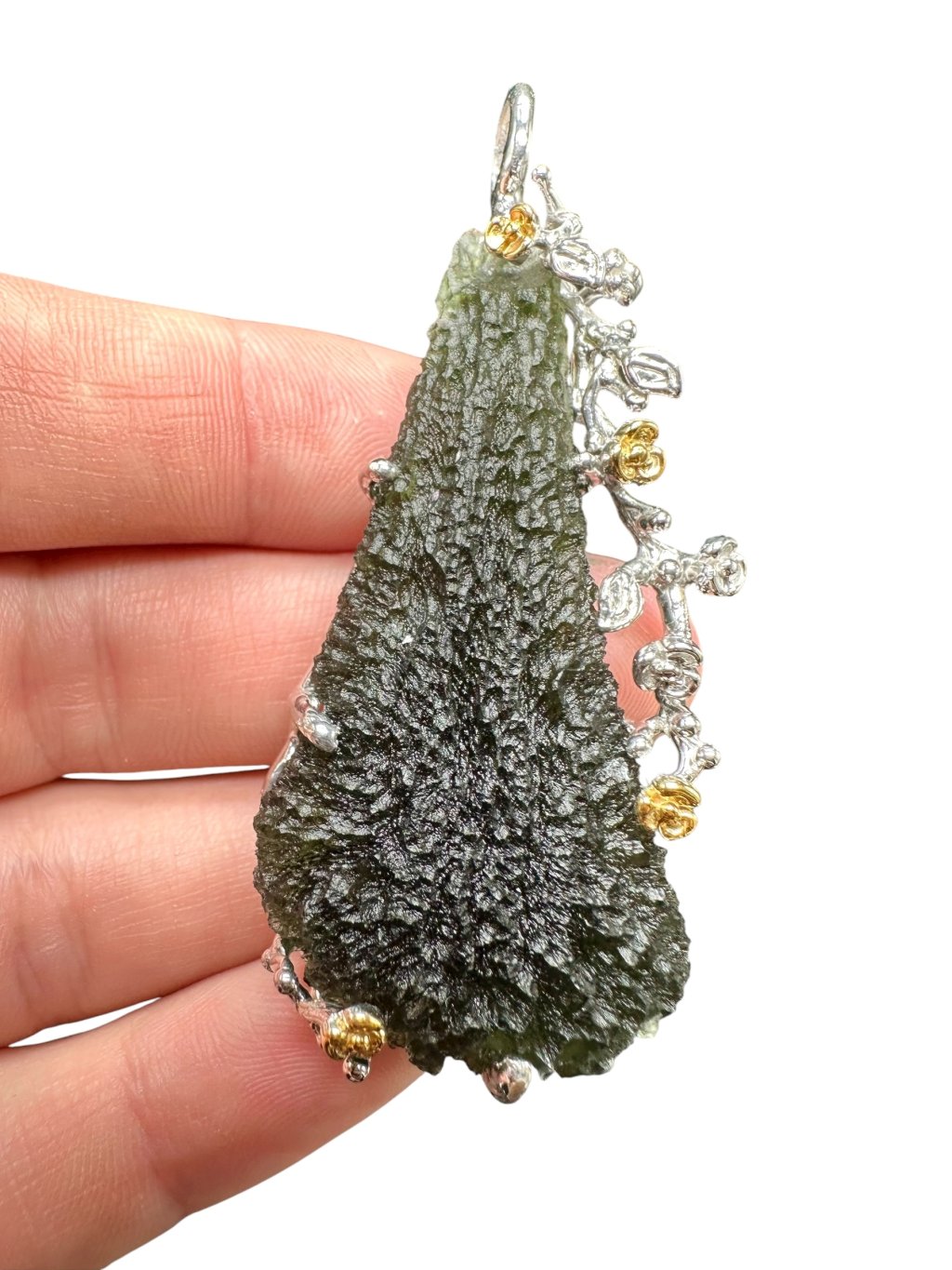 Stříbrný vltavínový přívěsek s pozlacenými prvky 24,8g