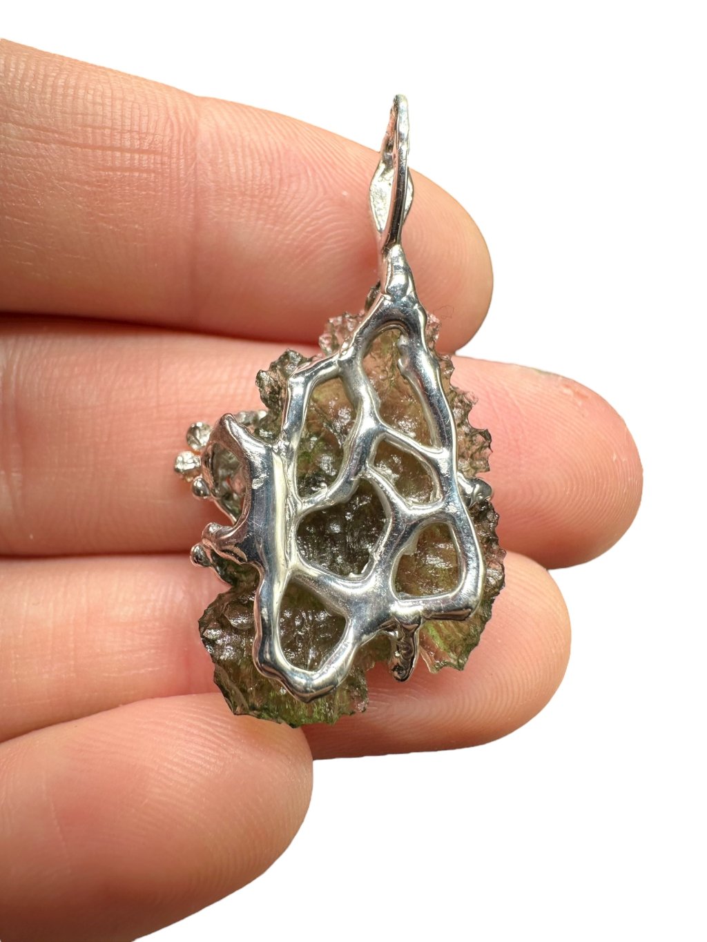 Stříbrný vltavínový přívěsek s pozlacenými prvky 4,8g