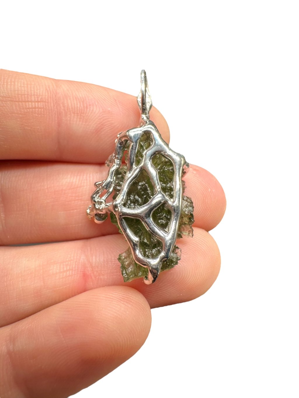 Stříbrný vltavínový přívěsek s pozlacenými prvky 5,9g