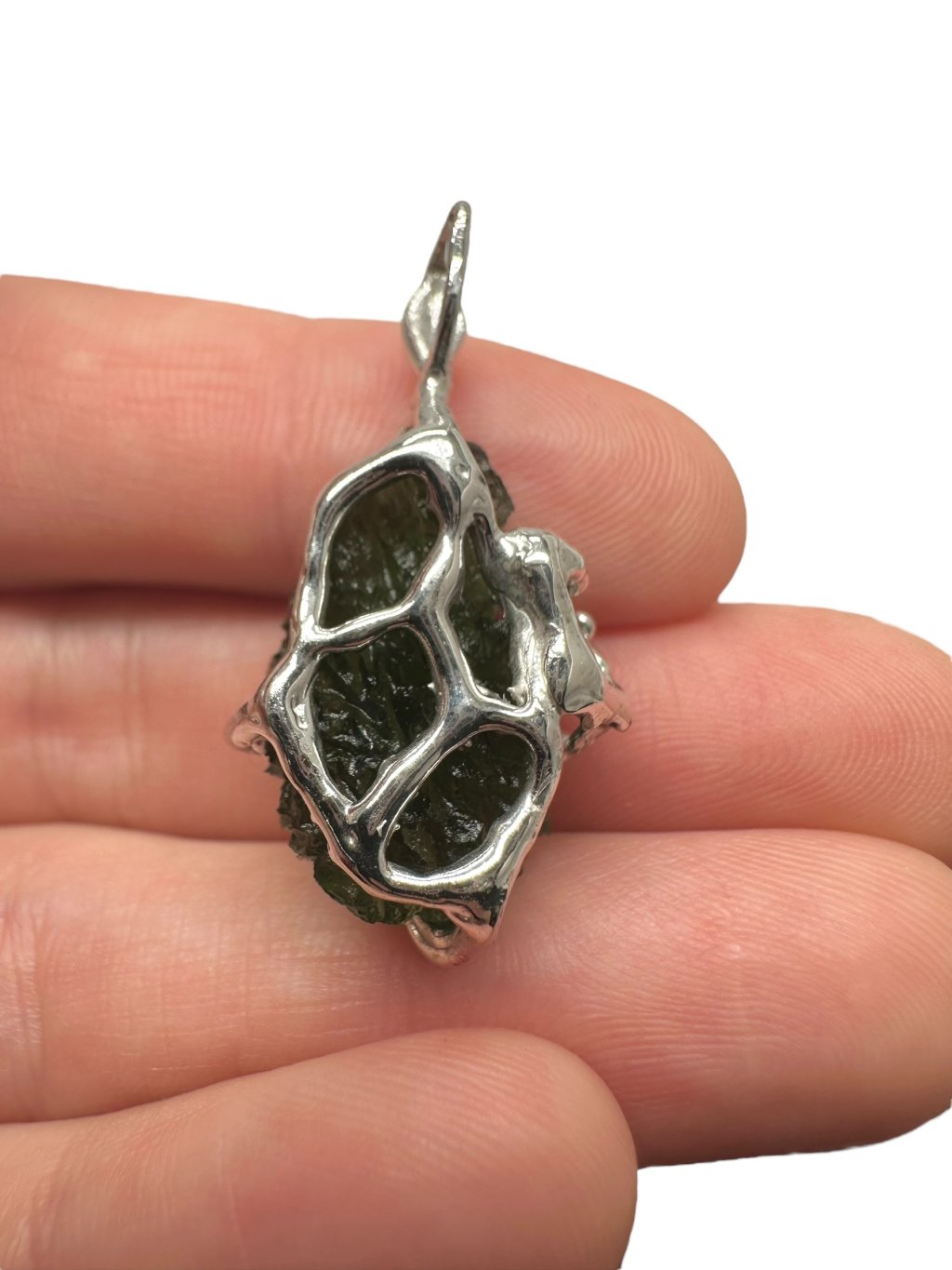 Stříbrný vltavínový přívěsek s pozlacenými prvky 5,9g