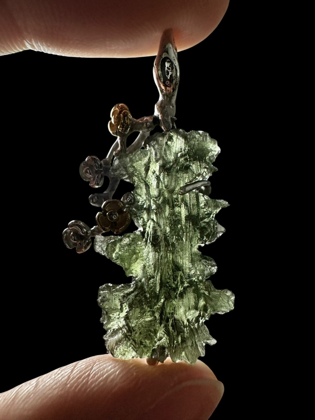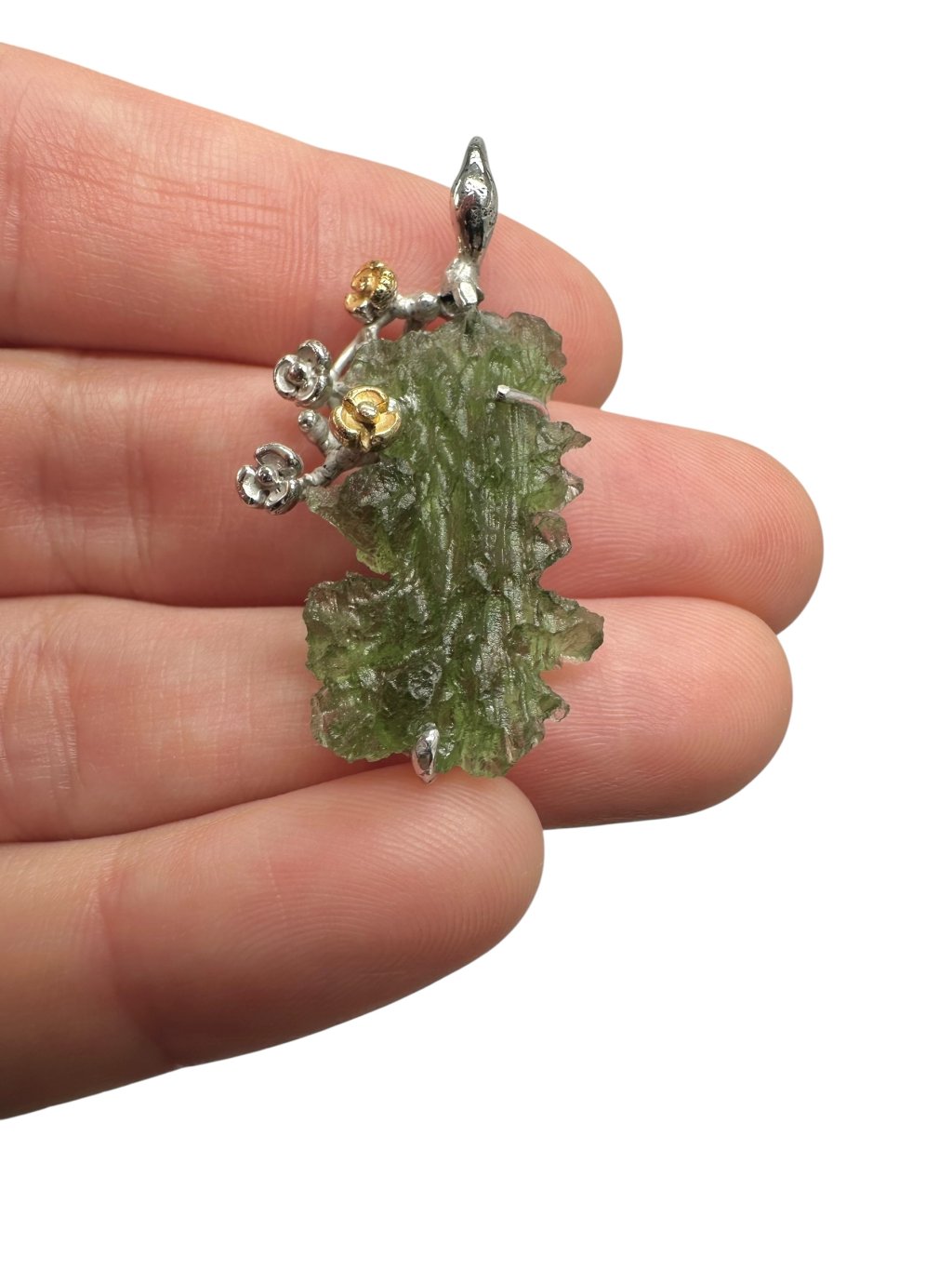 Stříbrný vltavínový přívěsek s pozlacenými prvky 5g