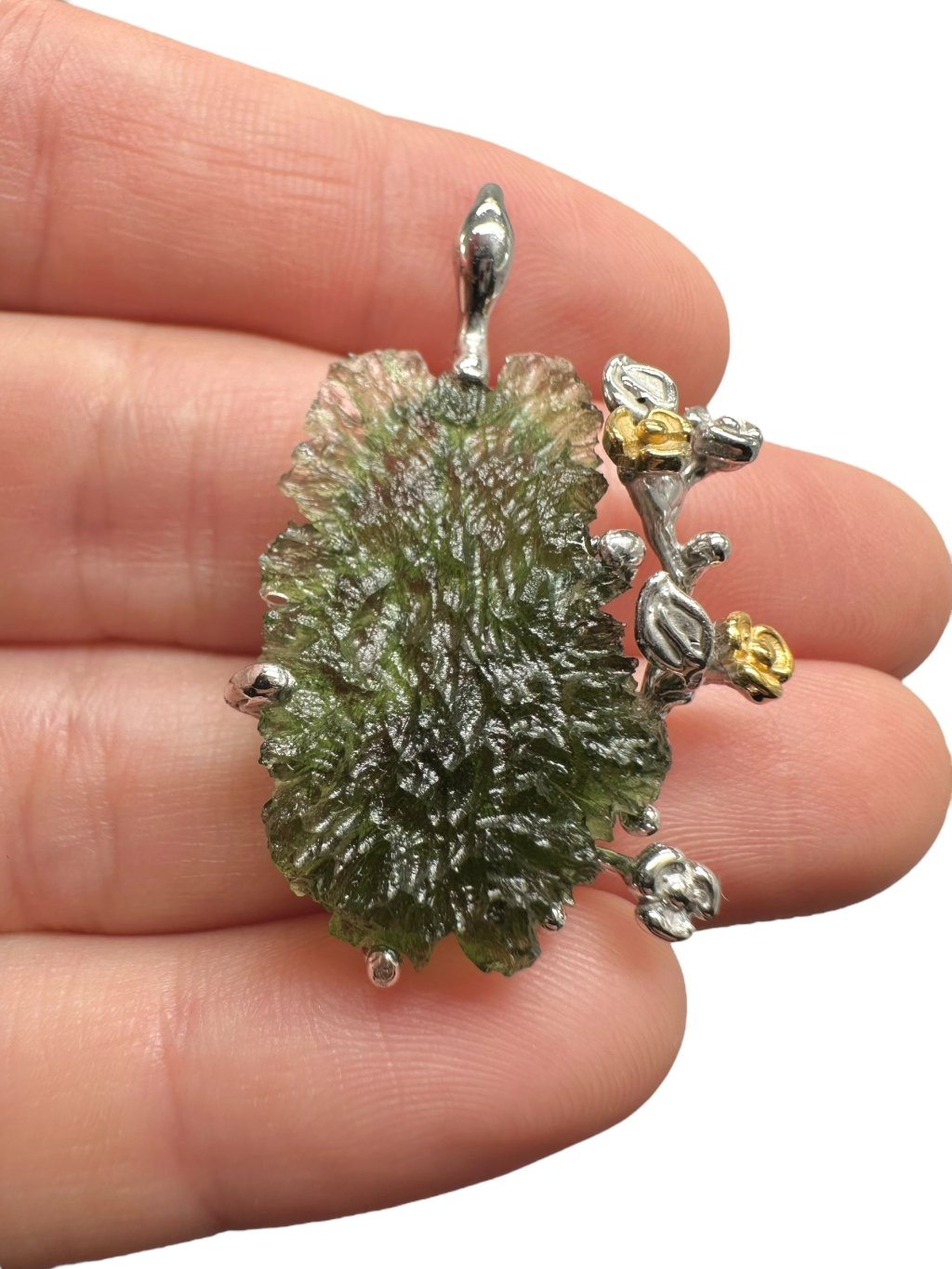 Stříbrný vltavínový přívěsek s pozlacenými prvky 6,8g