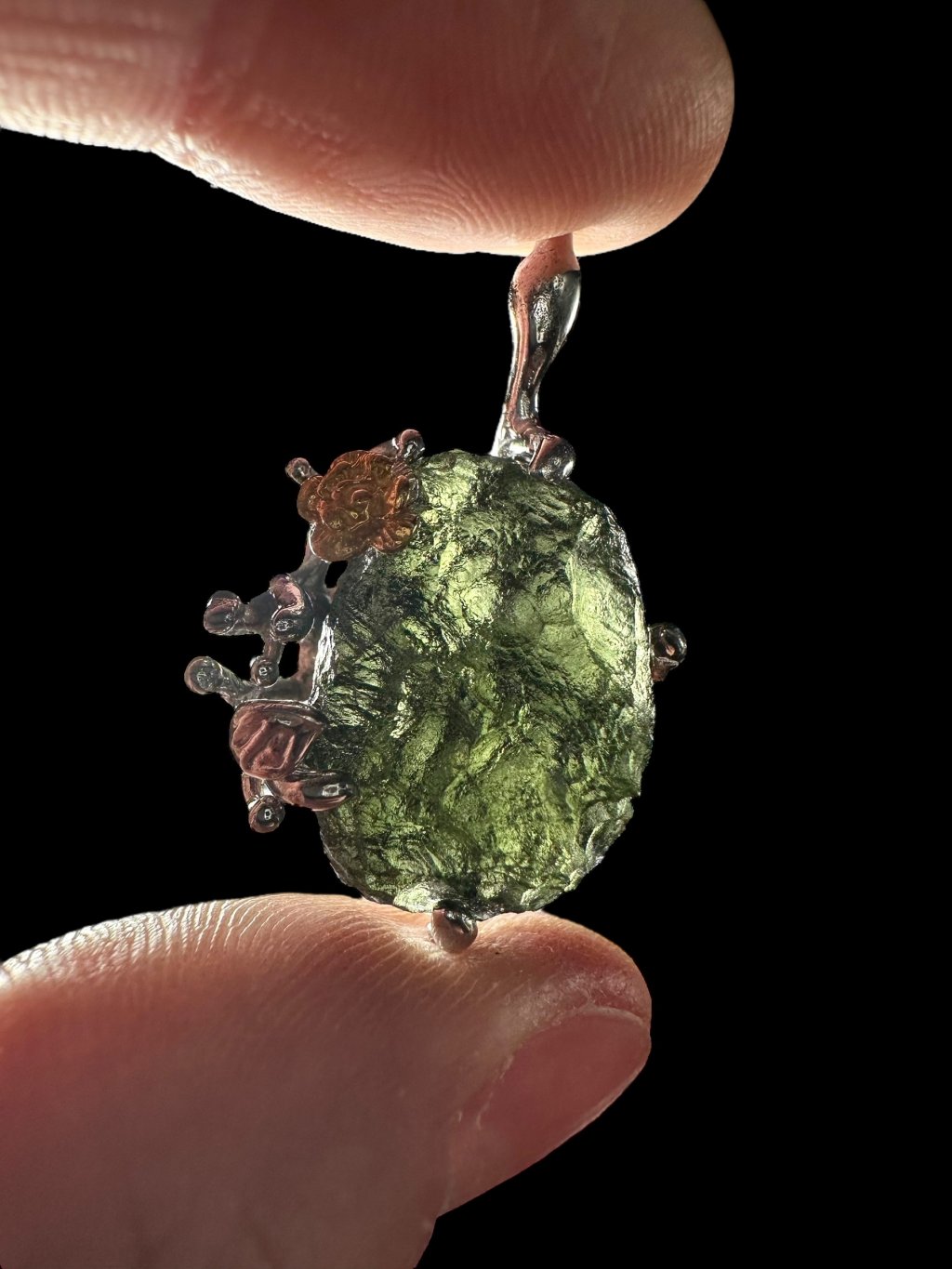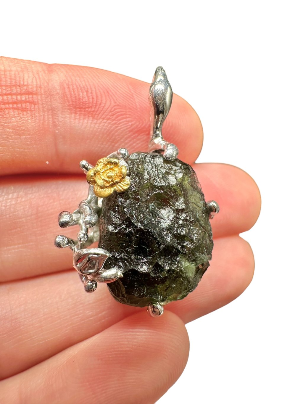 Stříbrný vltavínový přívěsek s pozlacenými prvky 7,1g