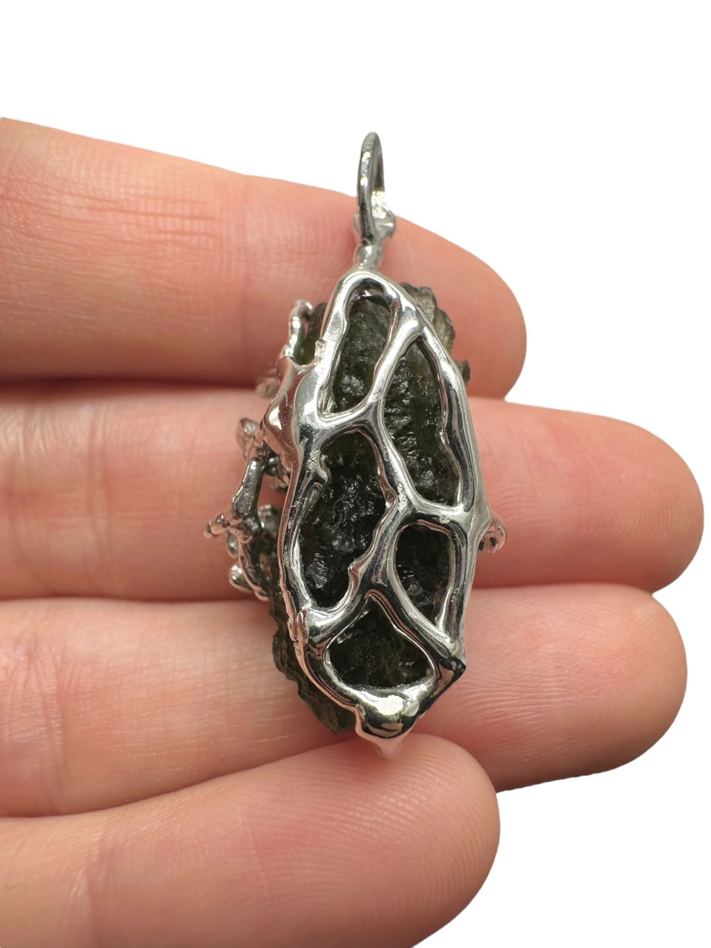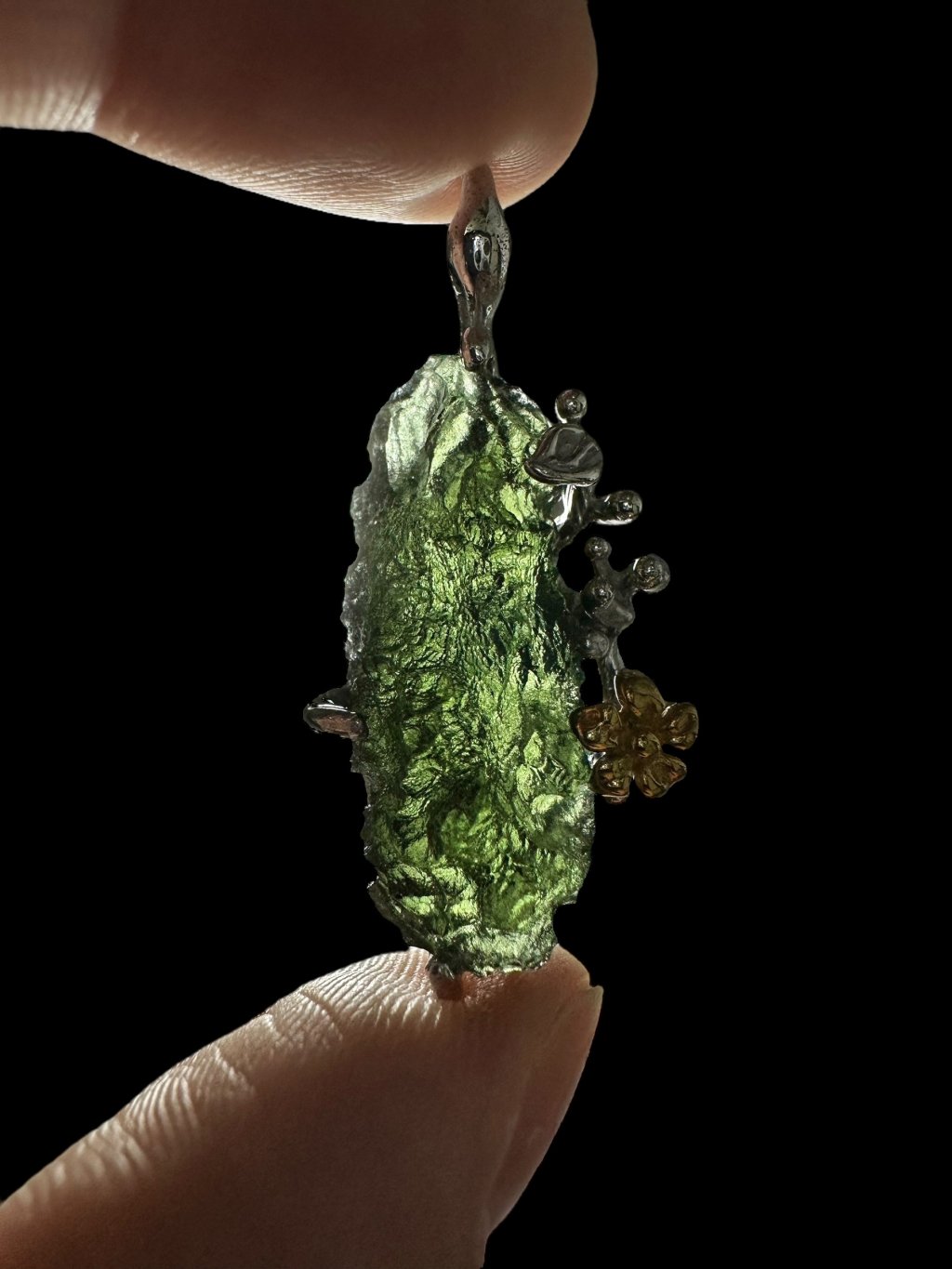 Stříbrný vltavínový přívěsek s pozlacenými prvky 7,8g