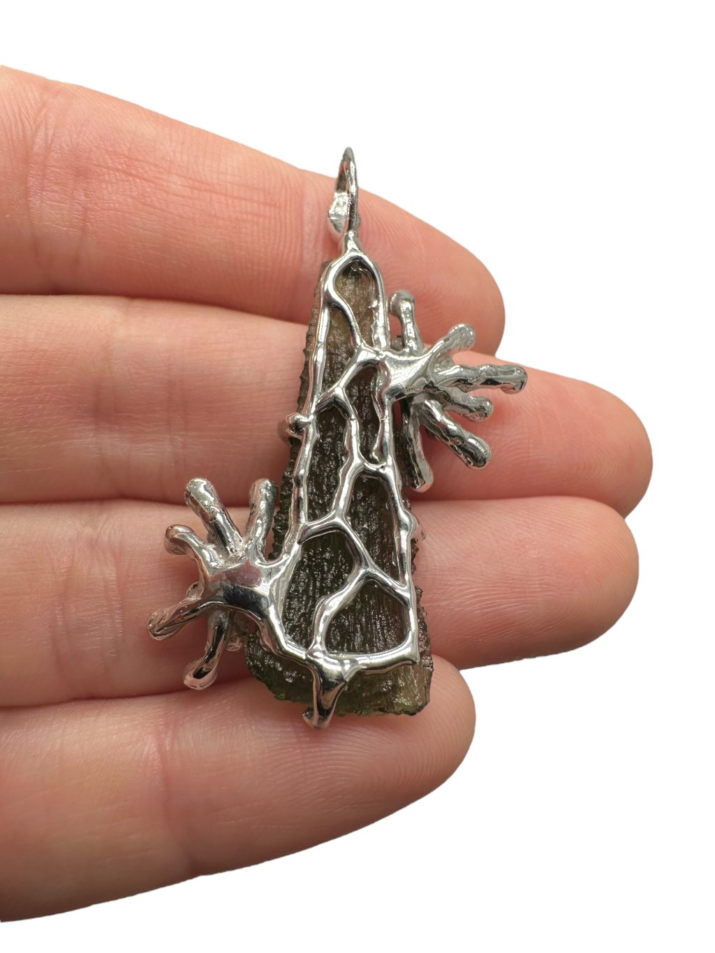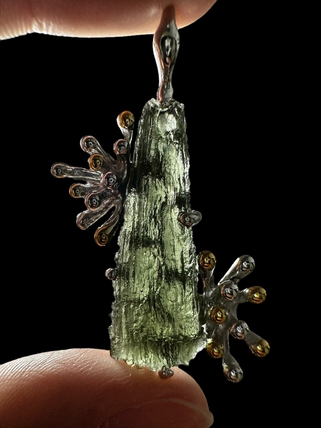 Stříbrný vltavínový přívěsek s pozlacenými prvky 7g