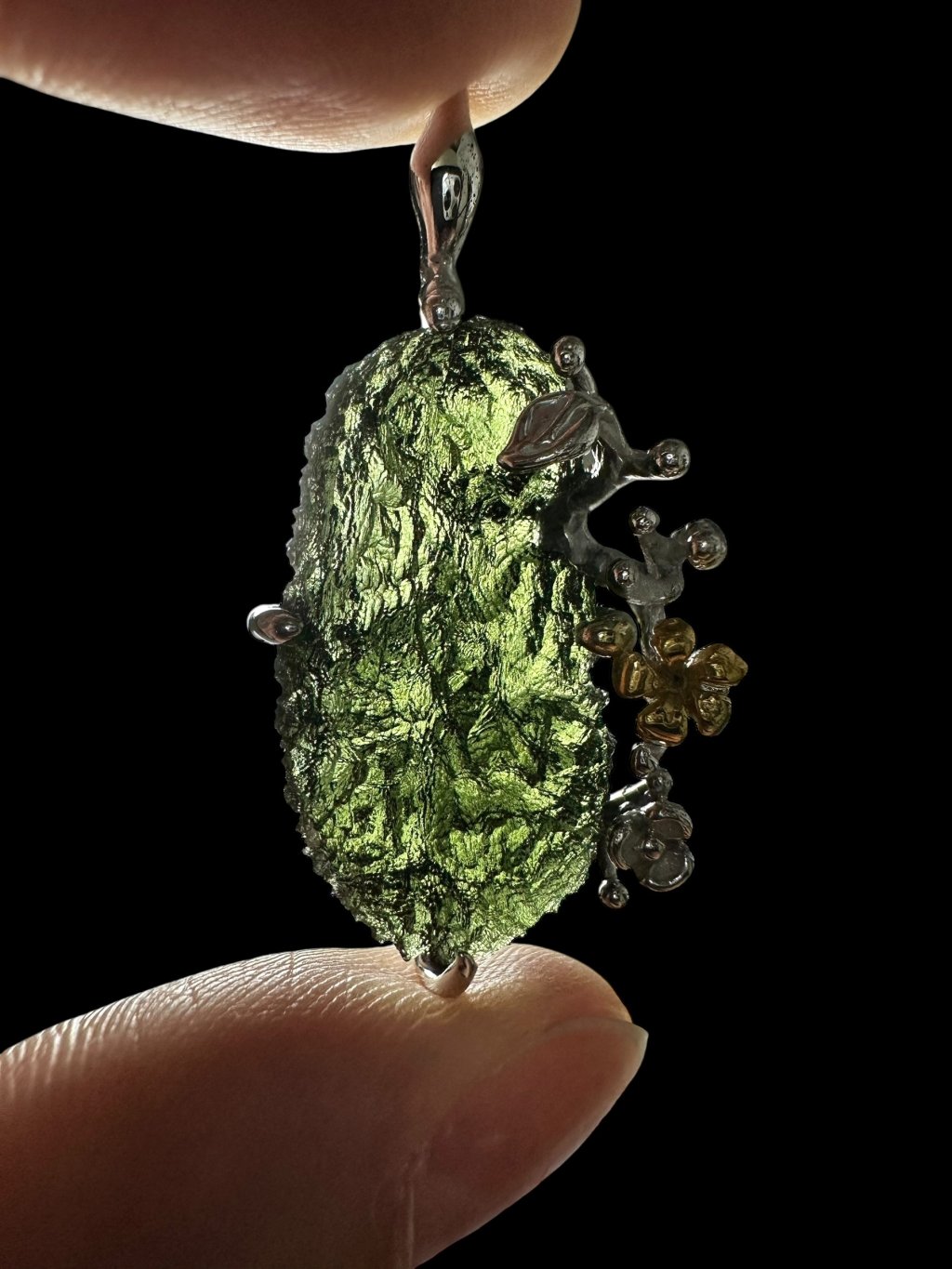 Stříbrný vltavínový přívěsek s pozlacenými prvky 8,1g