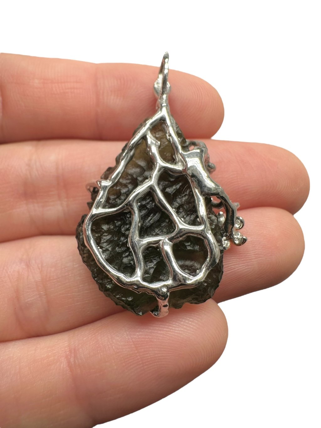 Stříbrný vltavínový přívěsek s pozlacenými prvky 8,1g