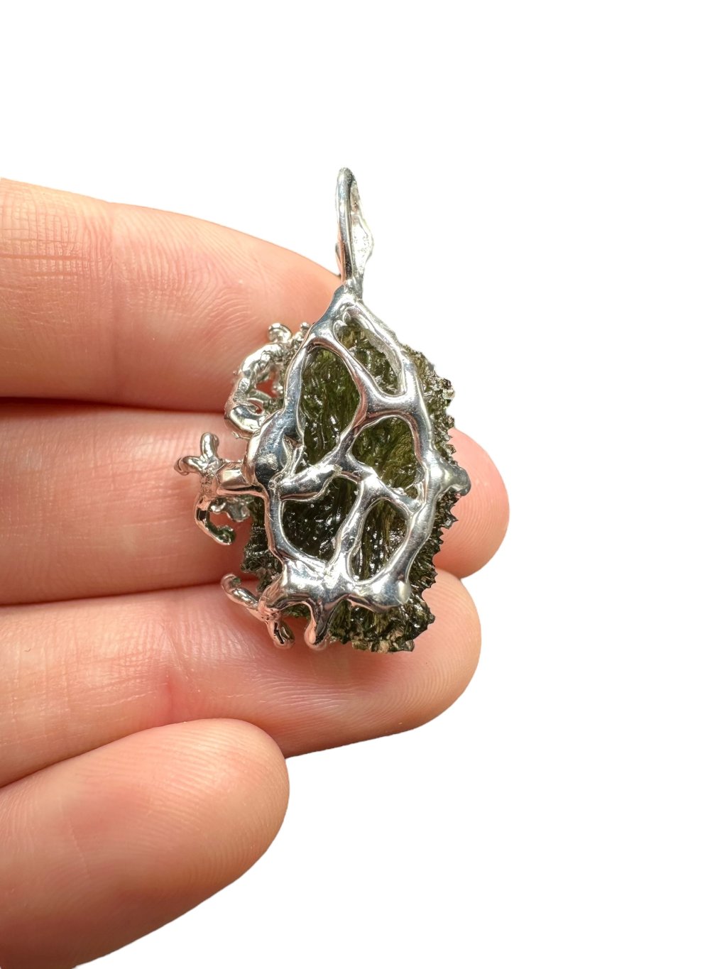 Stříbrný vltavínový přívěsek s pozlacenými prvky 8g