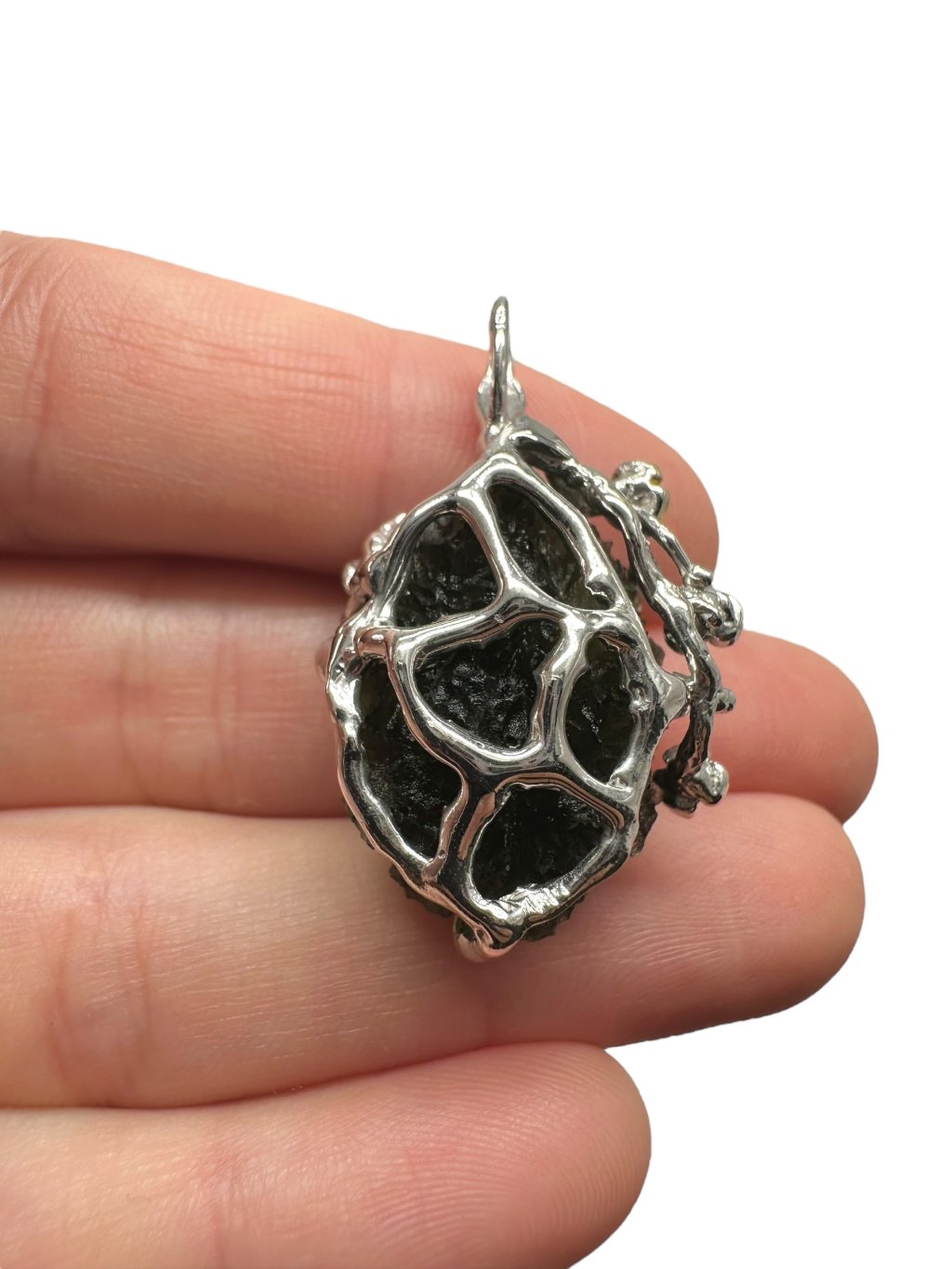 Stříbrný vltavínový přívěsek s pozlacenými prvky 9,7g