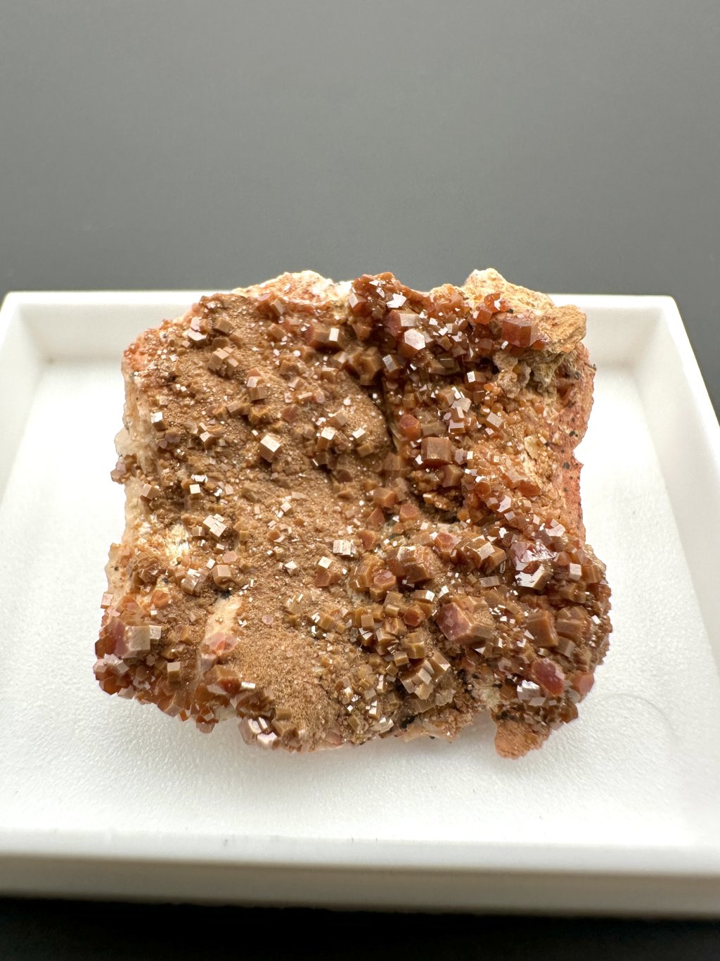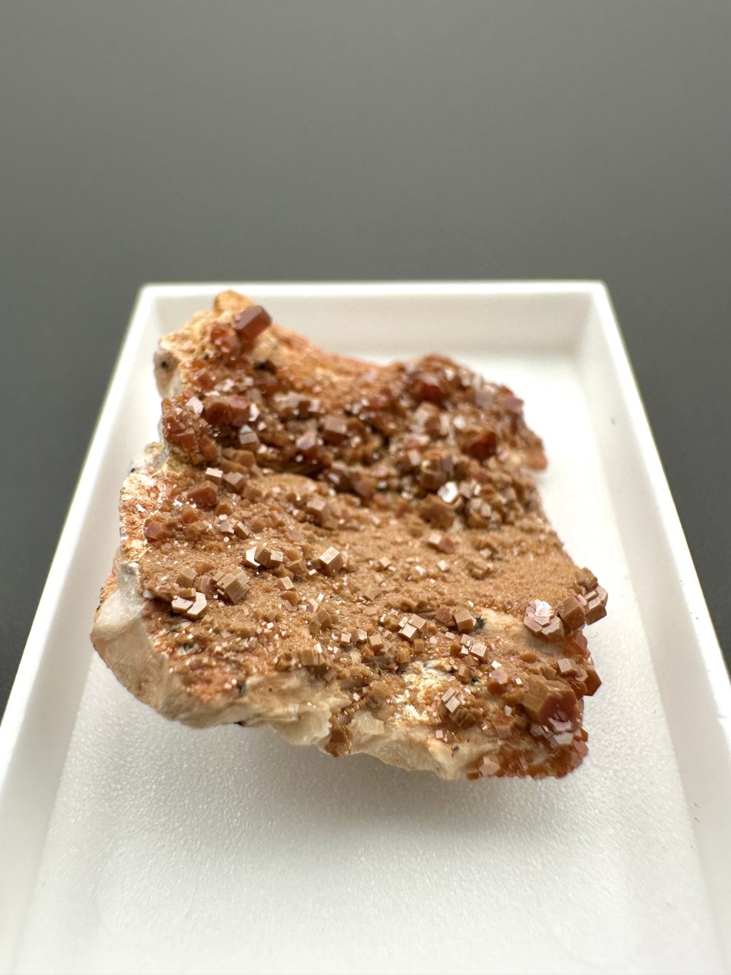 Vanadinit často tvoří nádherné kompozice s barytem, což vytváří velmi estetické sběratelské vzorky. V některých případech může být baryt, který je obvykle bílý nebo nažloutlý, pokrytý manganovými solemi. Manganové soli dodávají barytu tmavě hnědé až černé odstíny, což vytváří kontrast s krystaly vanadinitu. Tyto krystaly se typicky vyskytují v jasně červené nebo oranžové barvě, čímž vzniká vizuálně atraktivní kombinace
