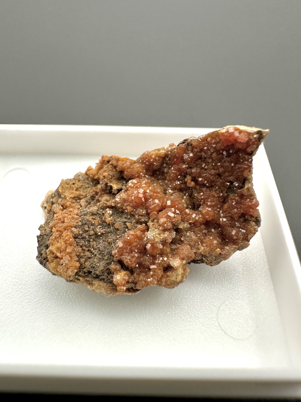 Vanadinit často tvoří nádherné kompozice s barytem, což vytváří velmi estetické sběratelské vzorky. V některých případech může být baryt, který je obvykle bílý nebo nažloutlý, pokrytý manganovými solemi. Manganové soli dodávají barytu tmavě hnědé až černé odstíny, což vytváří kontrast s krystaly vanadinitu. Tyto krystaly se typicky vyskytují v jasně červené nebo oranžové barvě, čímž vzniká vizuálně atraktivní kombinace