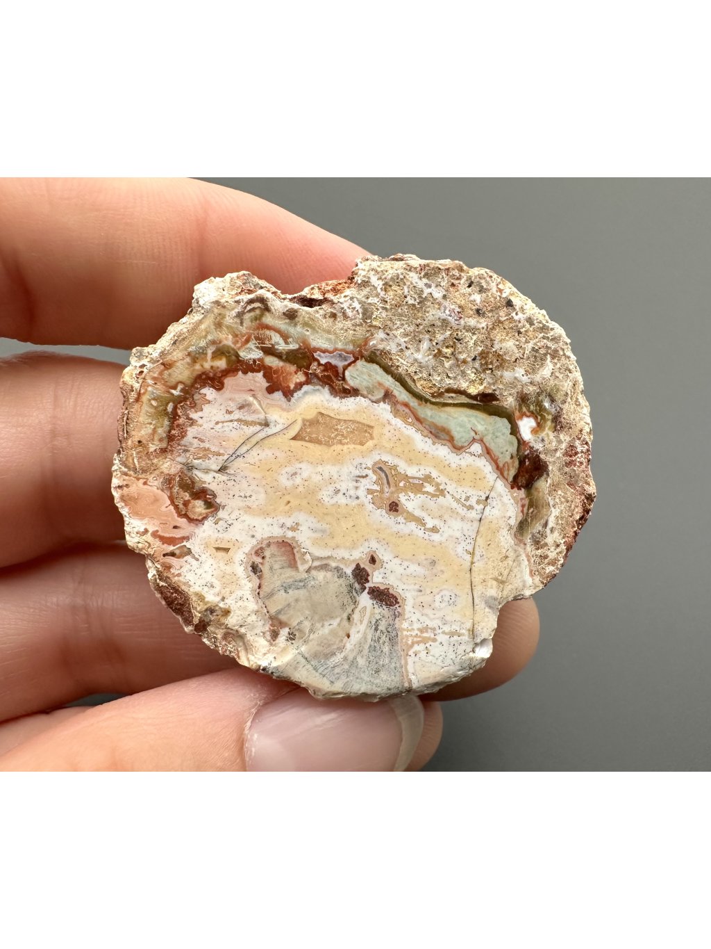 Povrchová úprava: oboustranně leštěný plátek (struktura kůry po obvodu je zachována)
