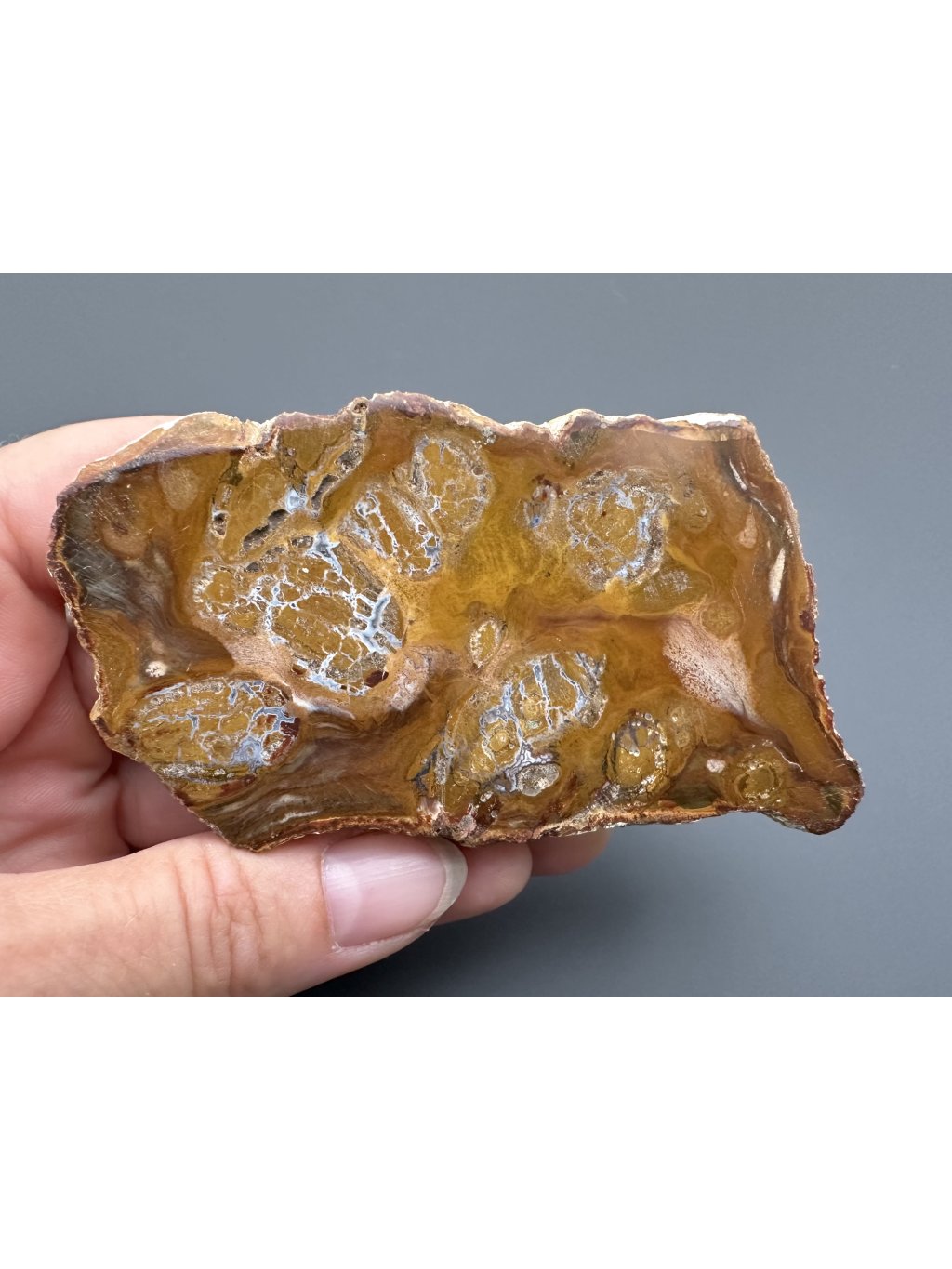 Povrchová úprava: oboustranně leštěný plátek (struktura kůry po obvodu je zachována)