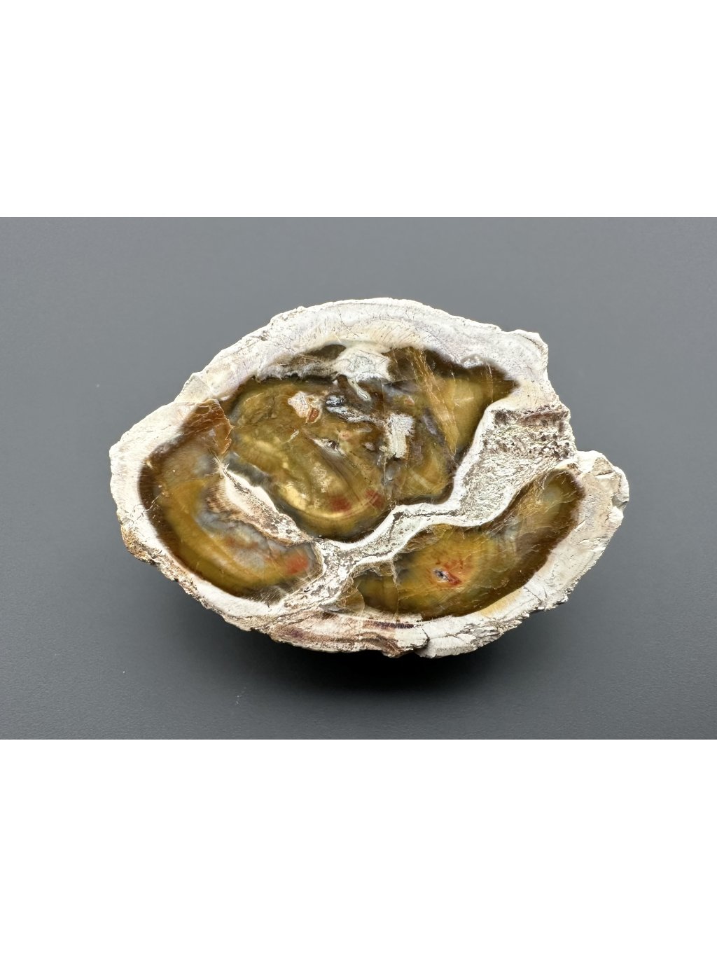 Zkamenělé dřevo, často nazývané Araukarit, je fosilizovaná forma dřeva, kde organický materiál byl nahrazen minerály, především křemenem, při zachování původní struktury dřeva. Tento proces trvá miliony let a výsledkem je krásně zbarvený kámen, který uchovává detaily původního dřevěného stromu. Název Araukarit pochází od Araucaria, jednoho z nejčastějších druhů stromů, které se v této zkamenělé formě nacházejí. Araucaria je rod stromů patřící do skupiny jehličnanů, které byly hojné v prehistorických obdobích, zejména v období triasu a jury.