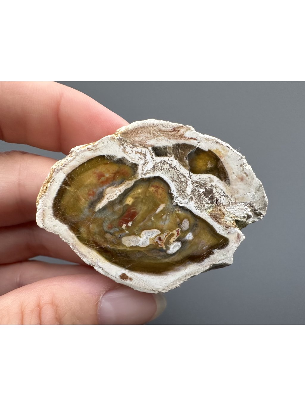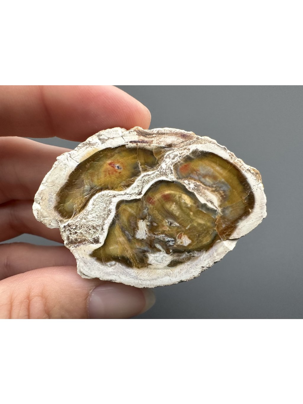 Povrchová úprava: oboustranně leštěný plátek (struktura kůry po obvodu je zachována)