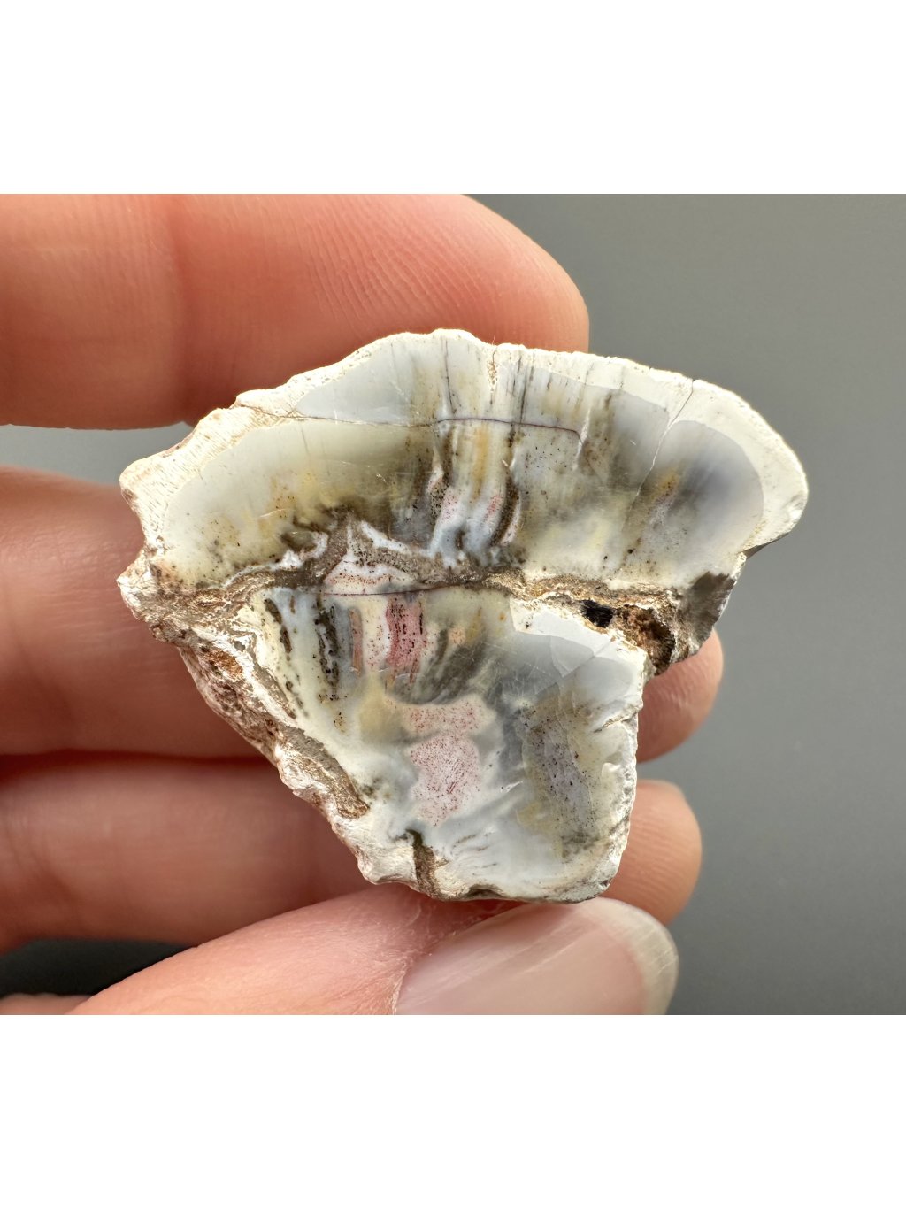 Povrchová úprava: oboustranně leštěný plátek (struktura kůry po obvodu je zachována)
