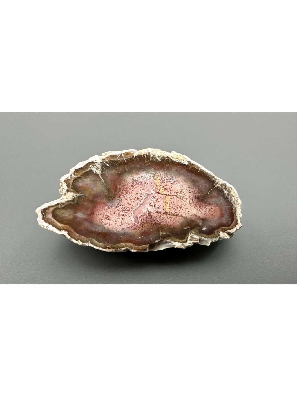 Zkamenělé dřevo, často nazývané Araukarit, je fosilizovaná forma dřeva, kde organický materiál byl nahrazen minerály, především křemenem, při zachování původní struktury dřeva. Tento proces trvá miliony let a výsledkem je krásně zbarvený kámen, který uchovává detaily původního dřevěného stromu. Název Araukarit pochází od Araucaria, jednoho z nejčastějších druhů stromů, které se v této zkamenělé formě nacházejí. Araucaria je rod stromů patřící do skupiny jehličnanů, které byly hojné v prehistorických obdobích, zejména v období triasu a jury.