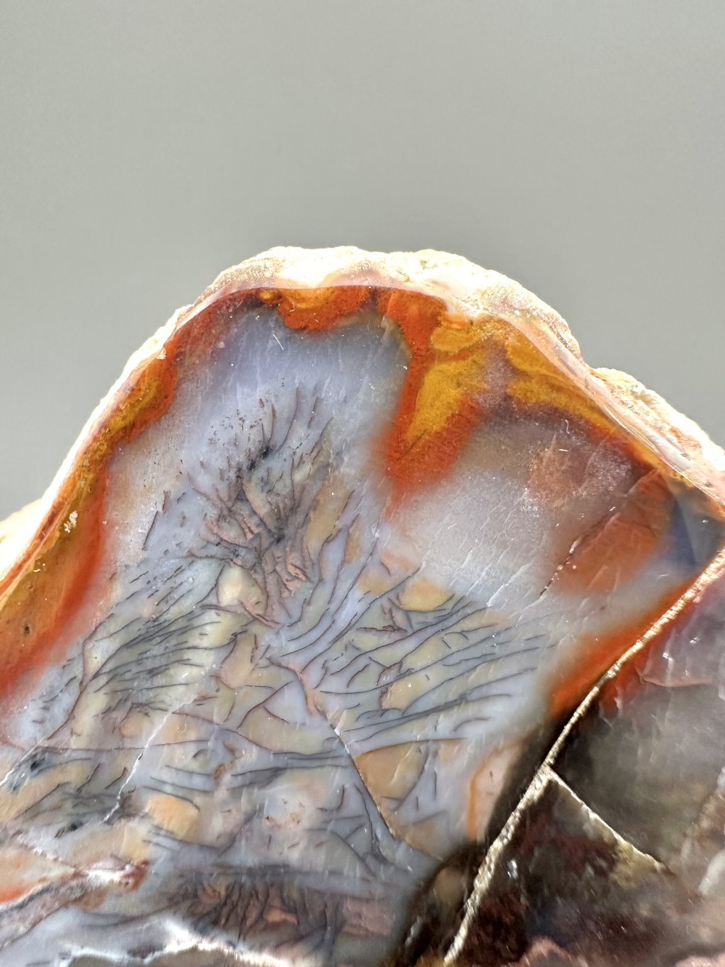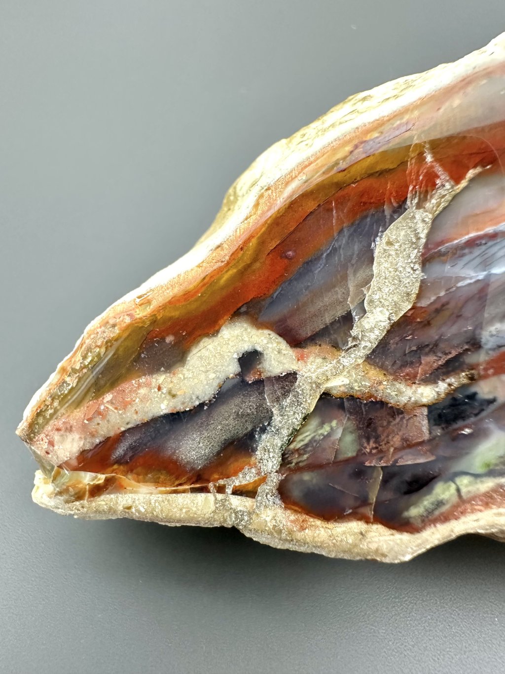 Zkamenělé opalizované dřevo s přírodní mědí – Západní Jáva, Indonésie
